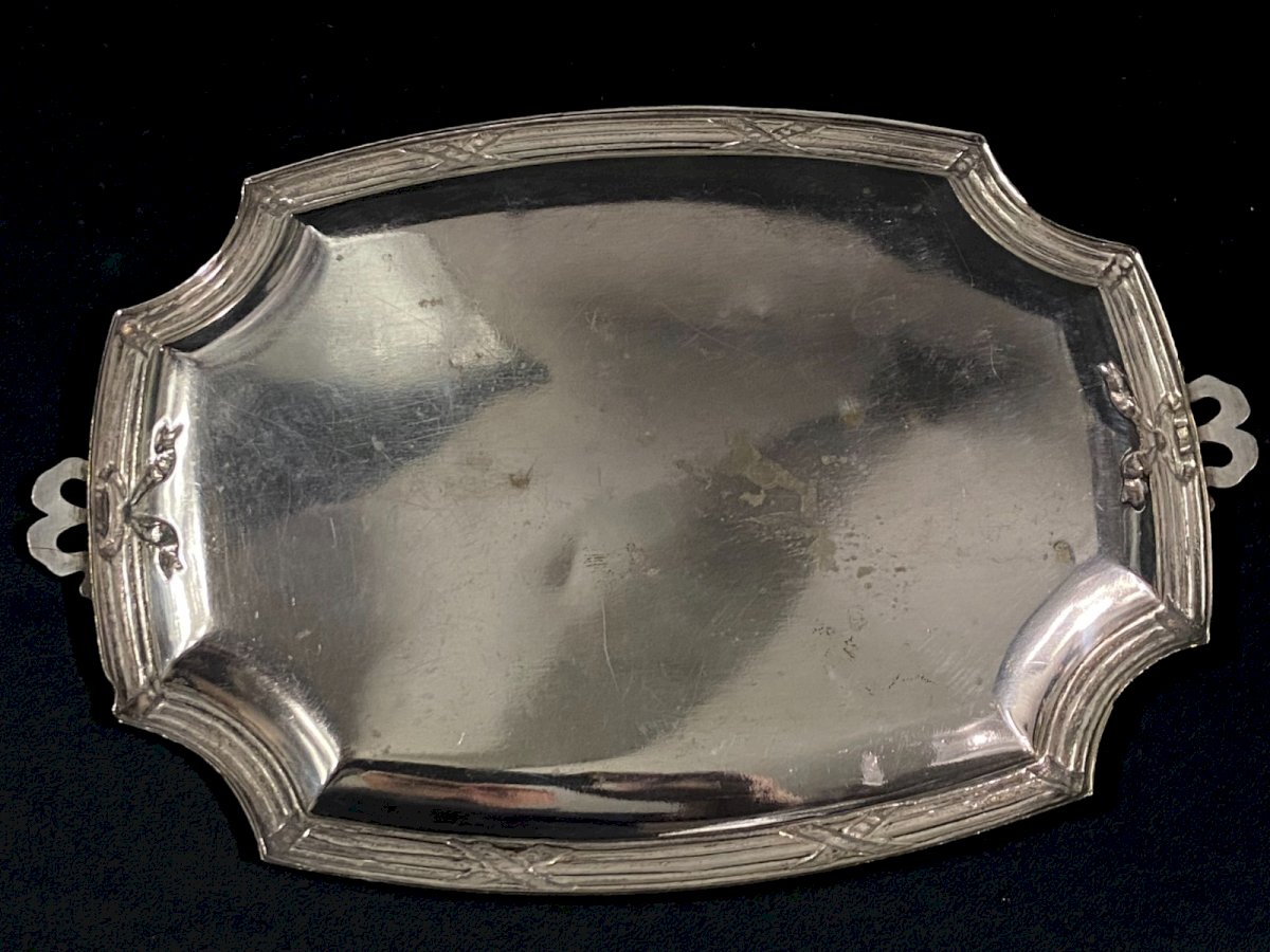 Plateau à missives en métal argenté de style Louis XVI Dimensions max : 24,5 x 16,7 x 1,3 cm Poids : 186 grammes Je signale la présence d'usures d'argentures, fines rayures usuelles et autres petites déformations Envoi TRES soigné dans le monde entier Authenticité:Original Type:Art de la table, Cuisine Origine:France Pays de fabrication:France Sous-type:Plateau Matière:Métal argenté Style:Louis XVI