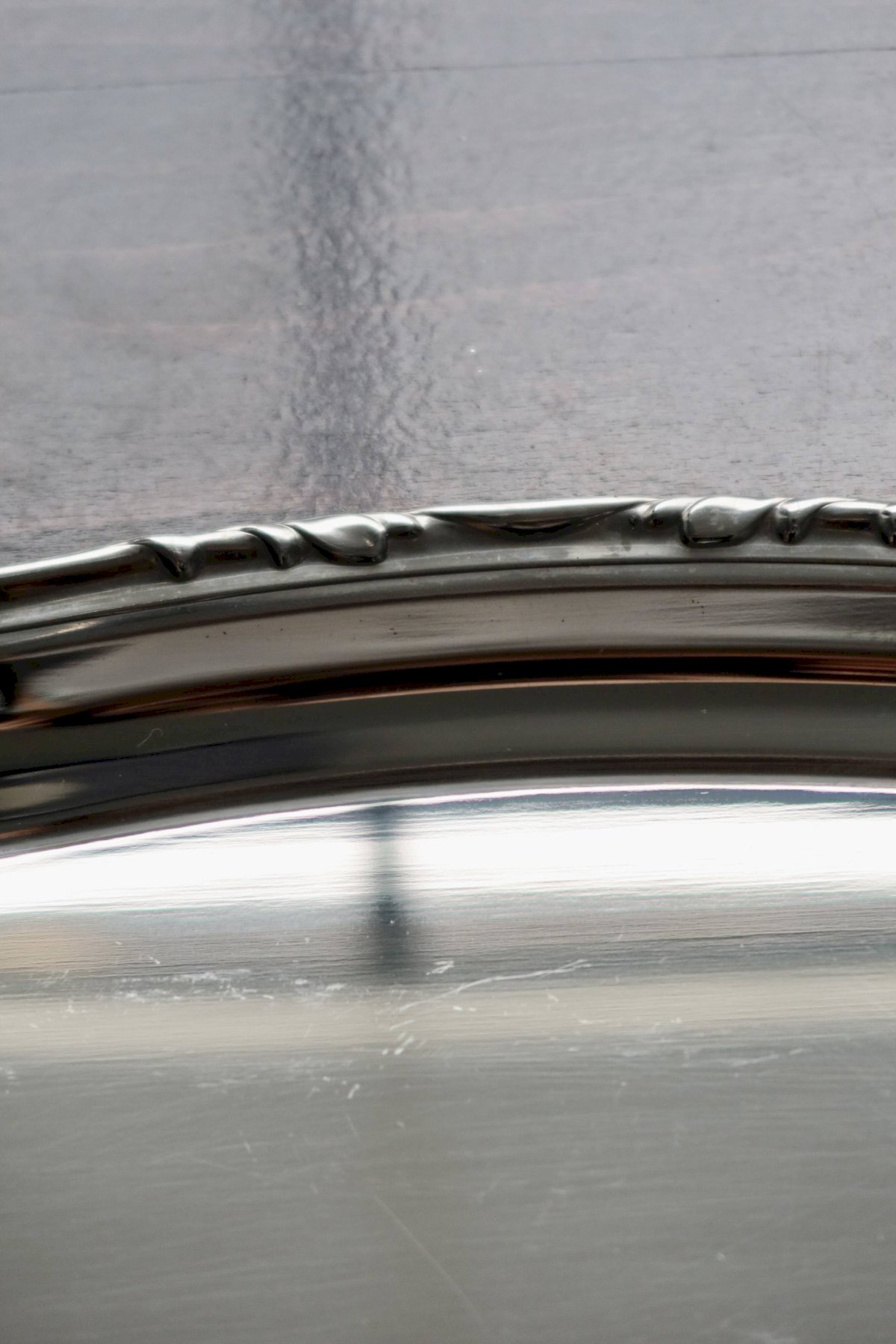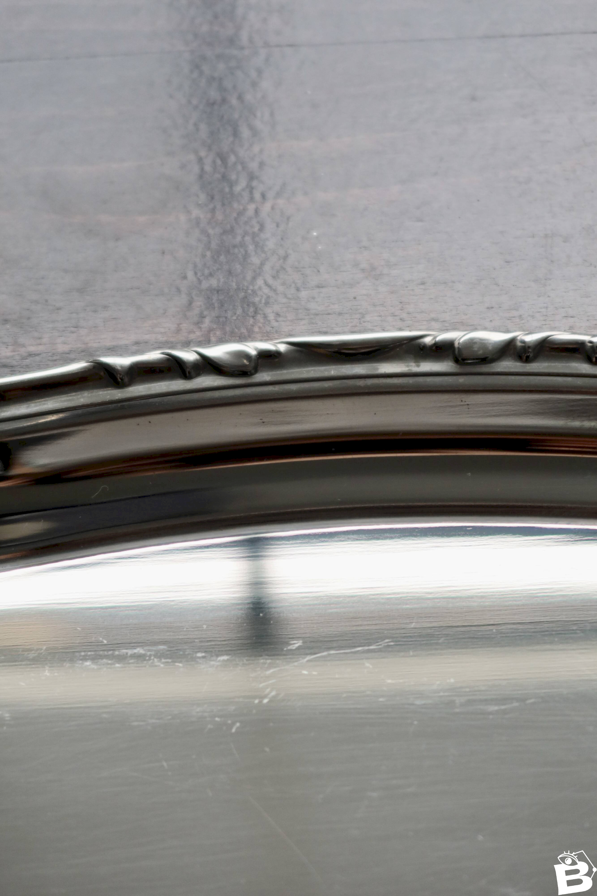 Plateau rond vintage en métal argenté brillant - Style bistrot
