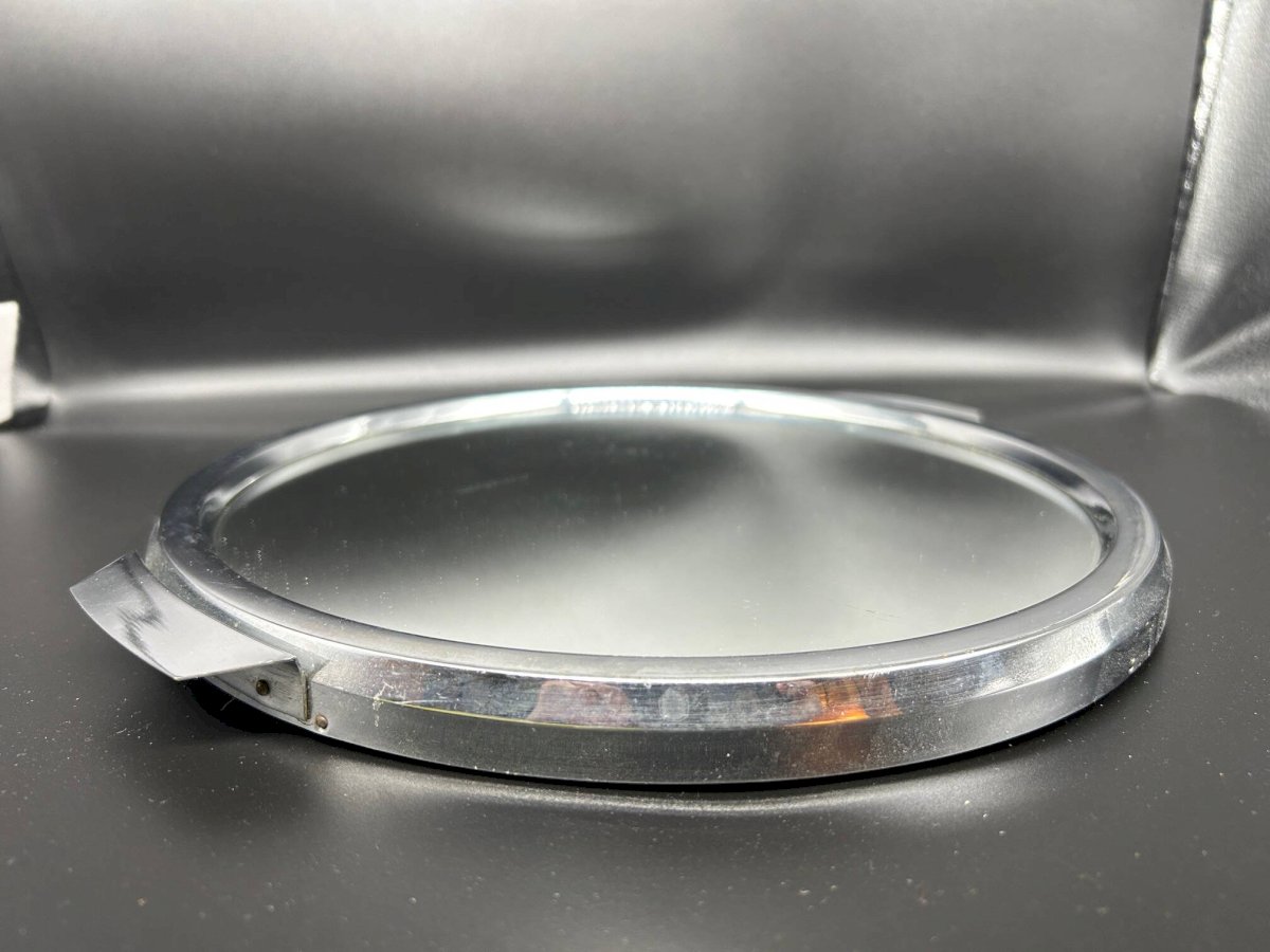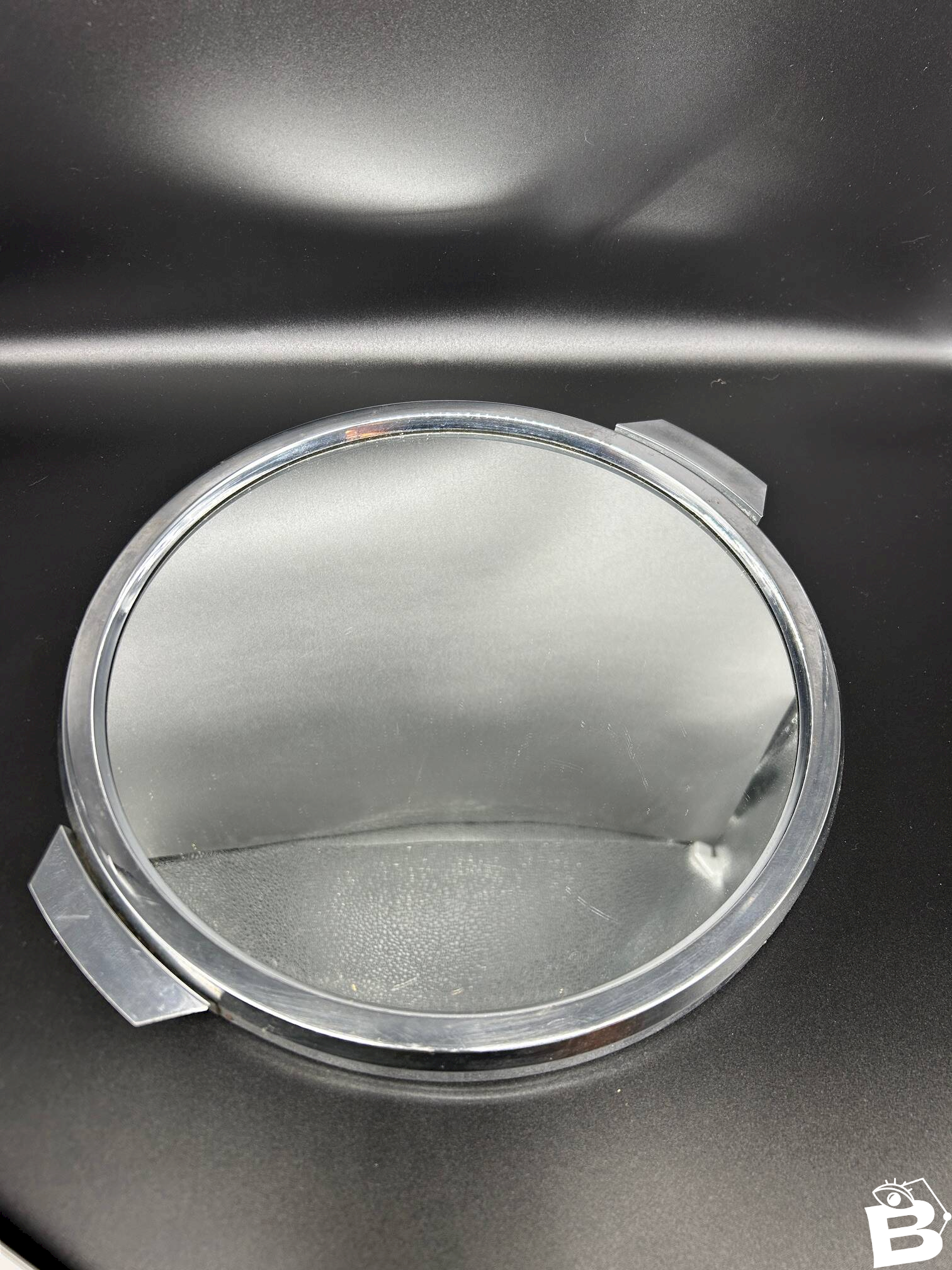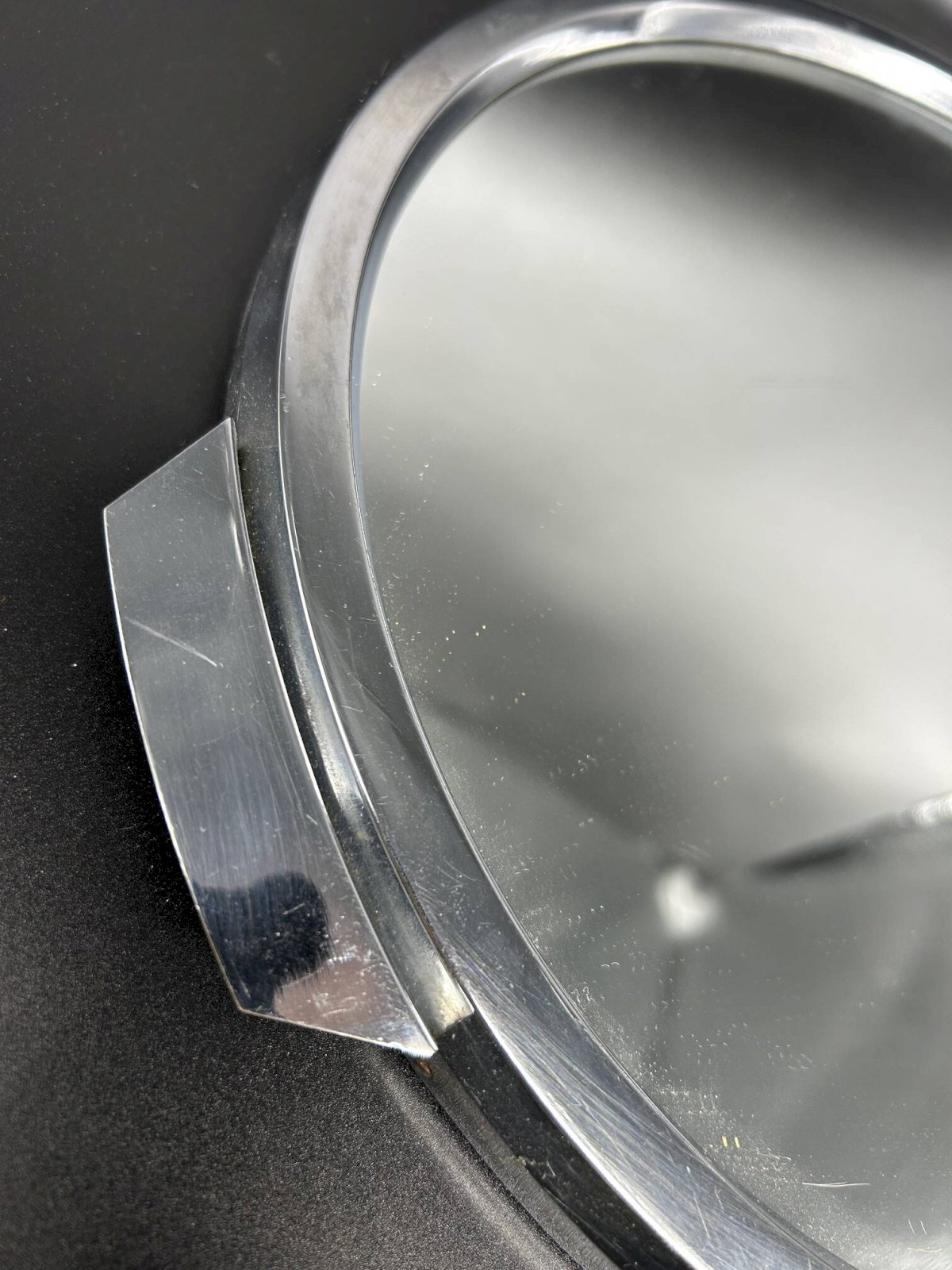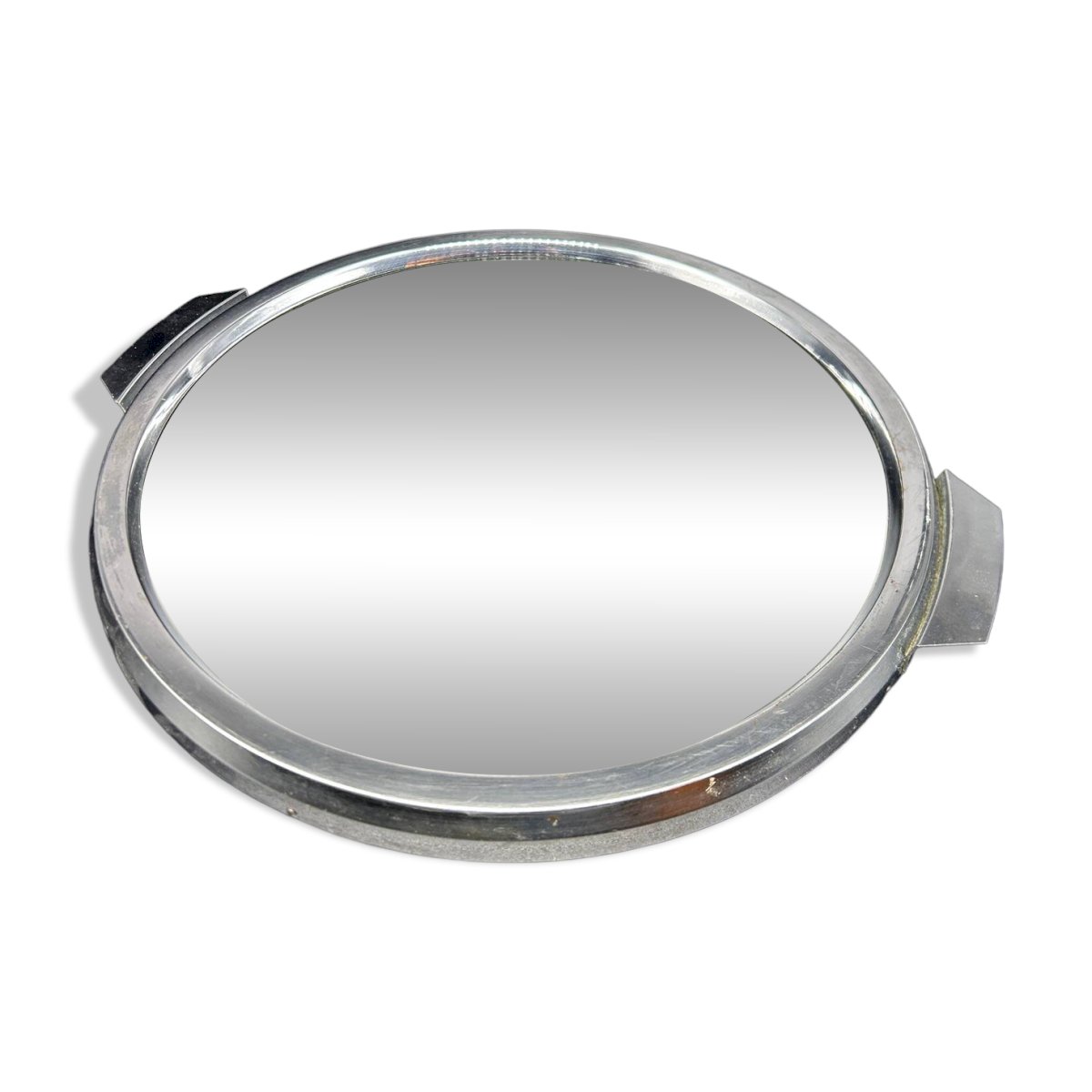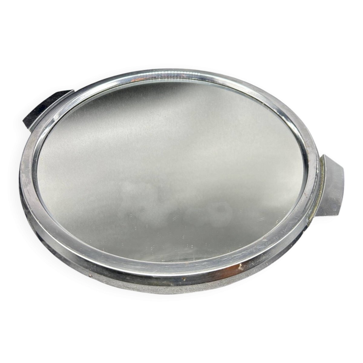 Plateau de la période art déco avec un pourtour en chrome et le dessus en miroir.