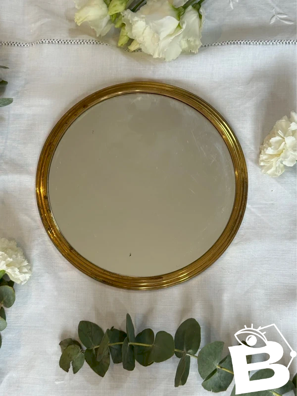 *JOLI ANCIEN PLATEAU MIROIR FLEURS GRAVEES DECO VINTAGE COLLECTION VITRINE XXe