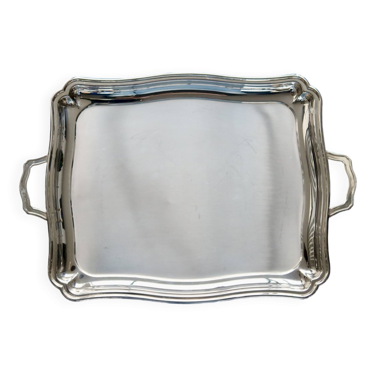 Plateau rectangulaire vintage métal inoxydable - Bord rocaille
