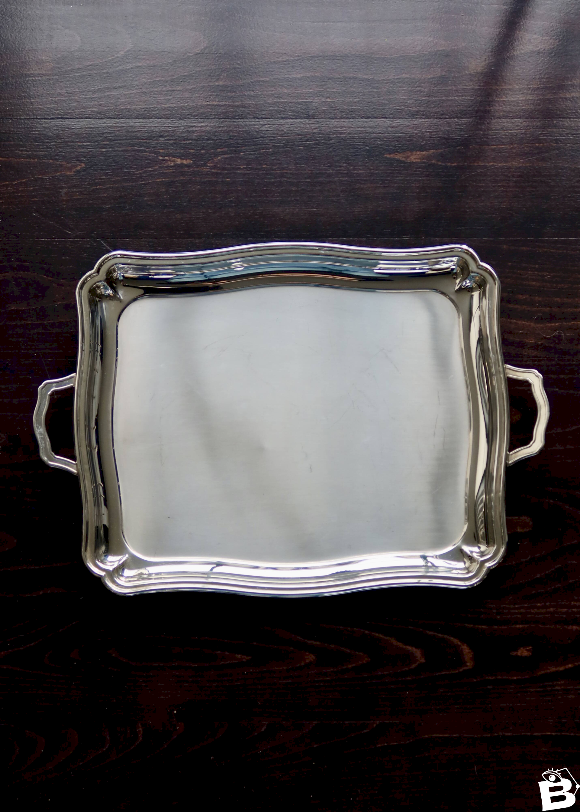 Plateau rectangulaire vintage en métal argenté brillant - Style bistrot