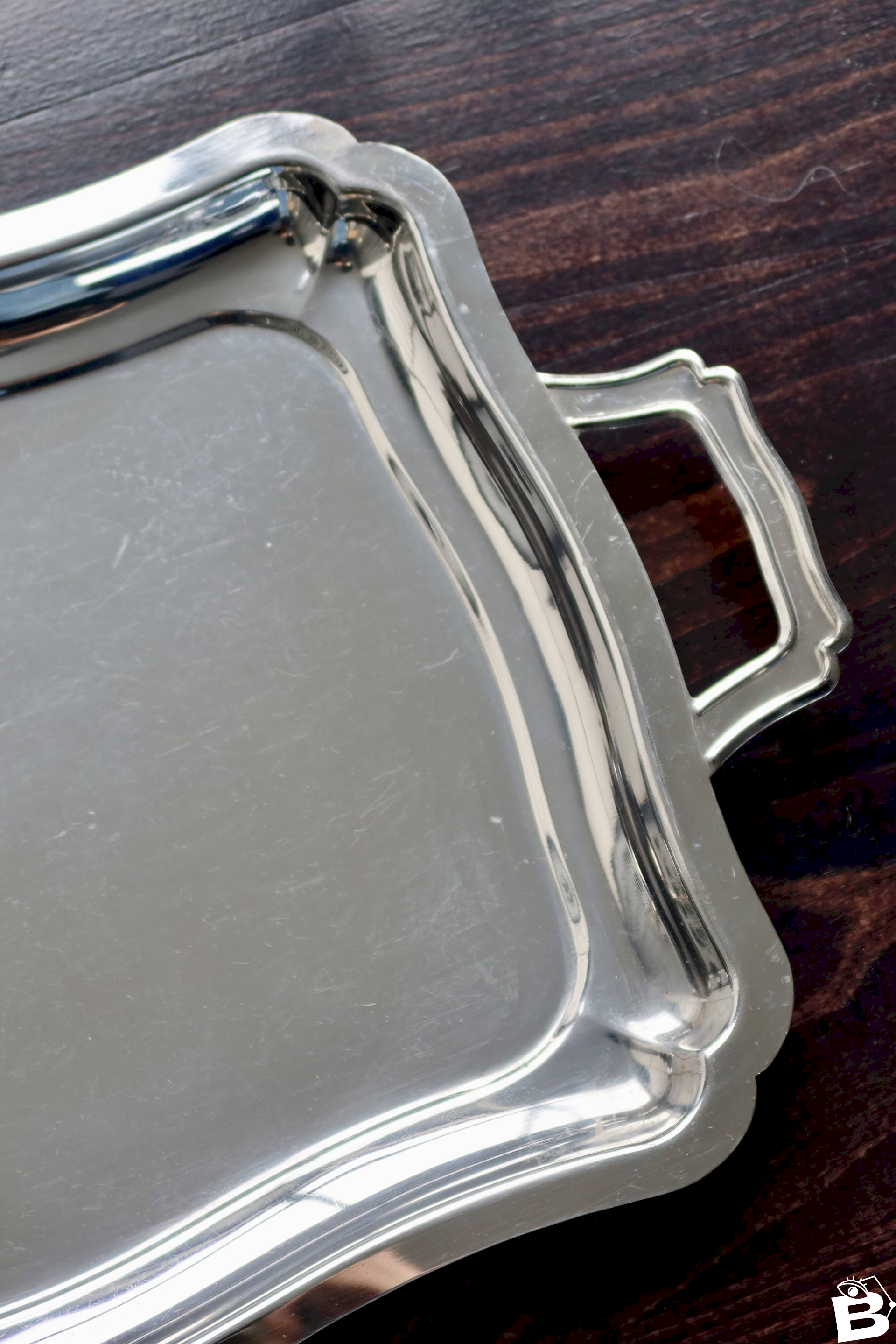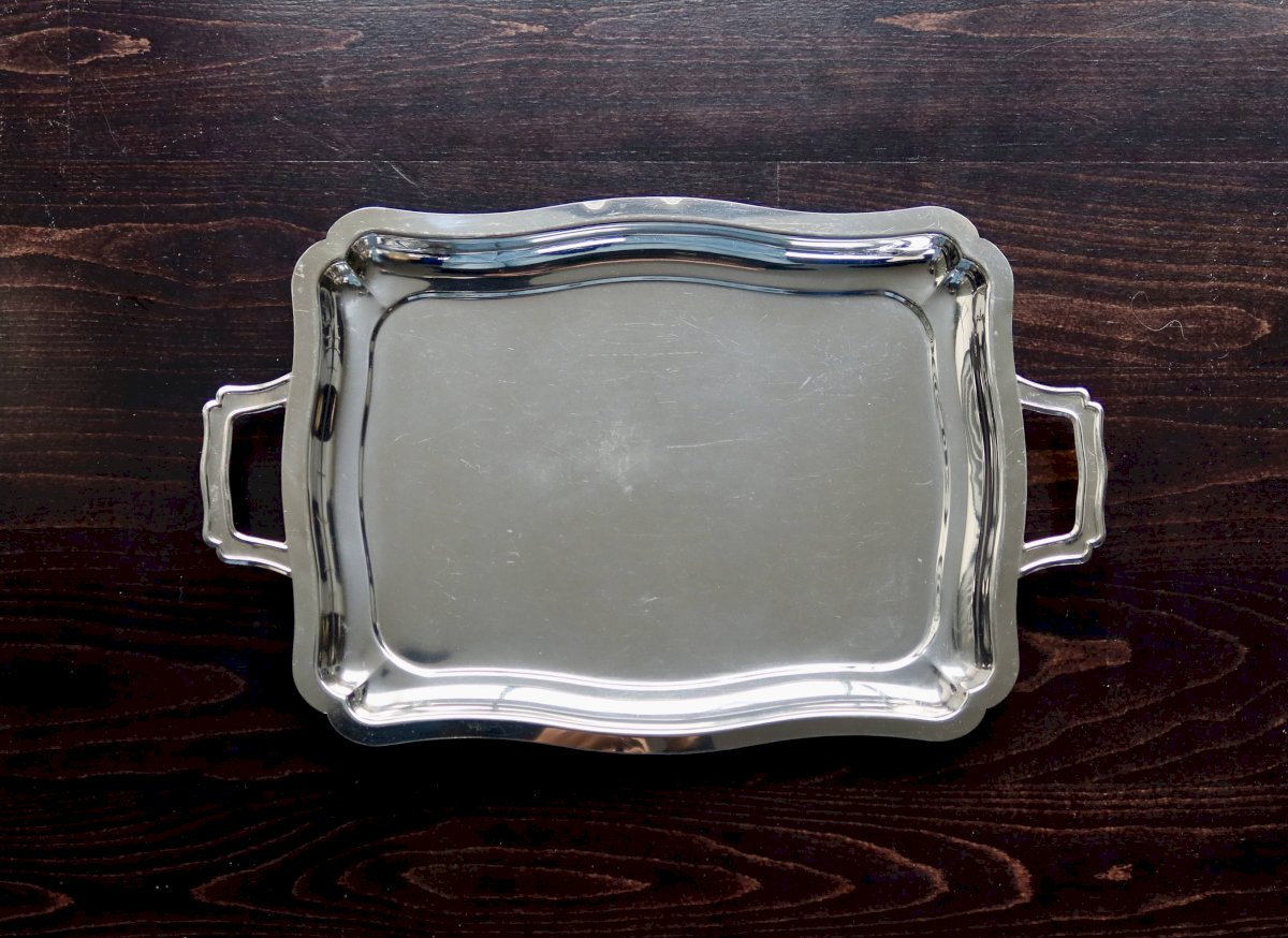 Plateau rectangulaire vintage en métal argenté brillant - Style bistrot