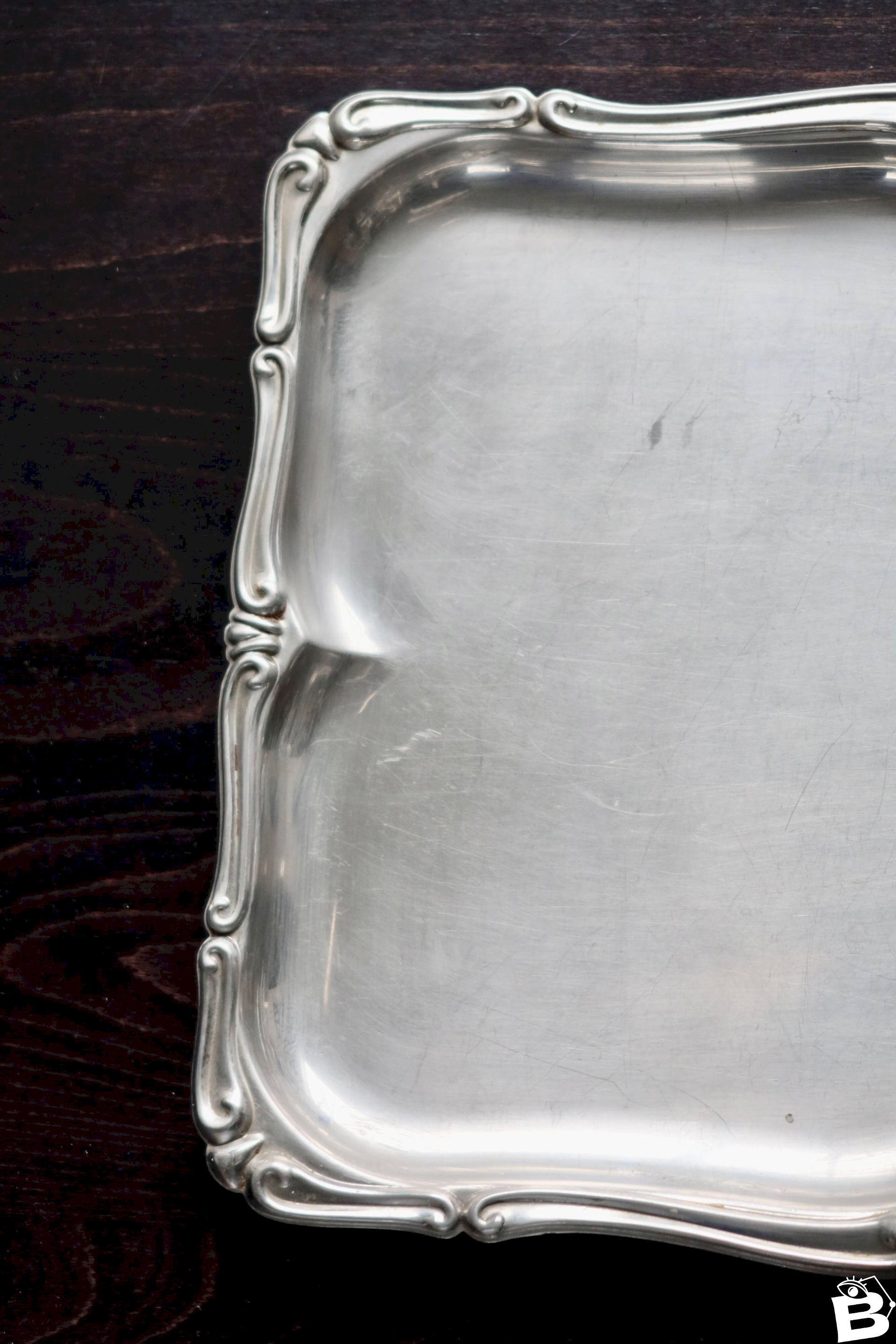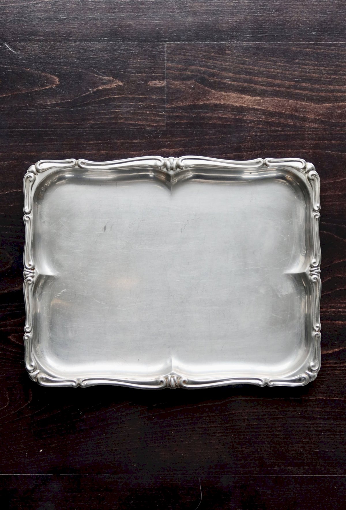 Plateau rectangulaire vintage métal inoxydable - Bord rocaille