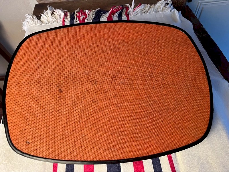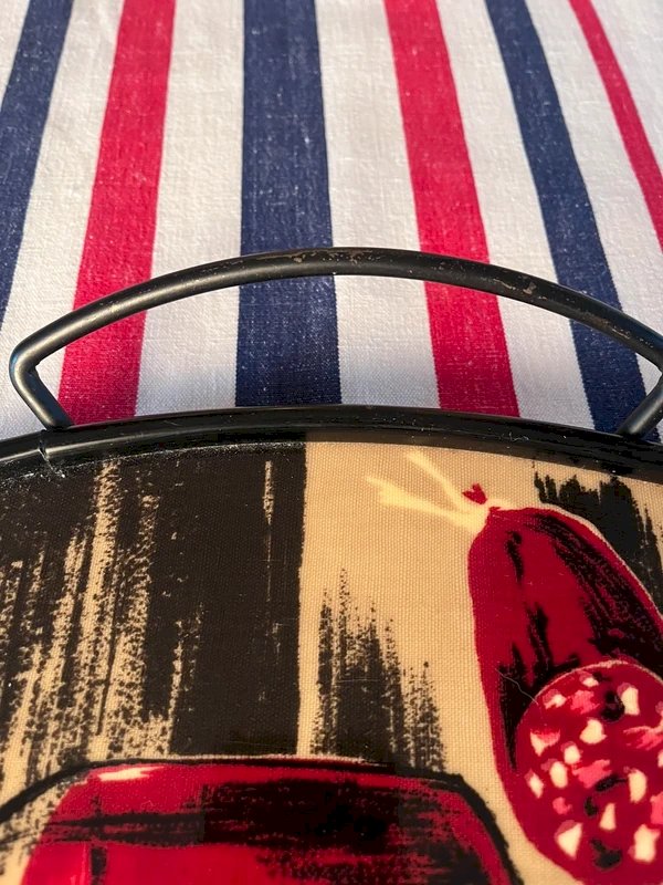 Beau plateau vintage en Formica années 70, représentant une nature morte.