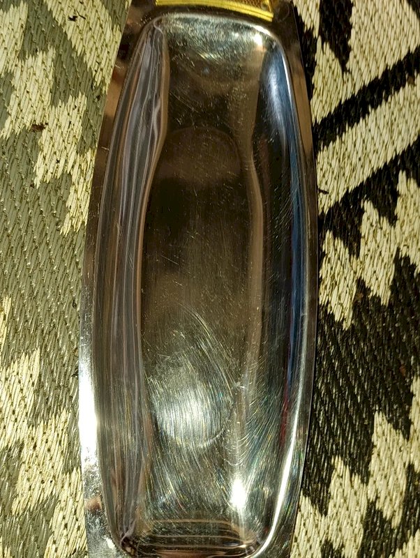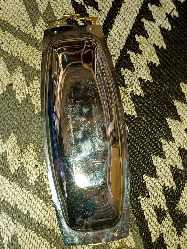 plateau vintage made in usa en metal chrome et poignee dore en bon etat usures et frottements d'usages (voir photos) dimension 45x15cm avec poignee
