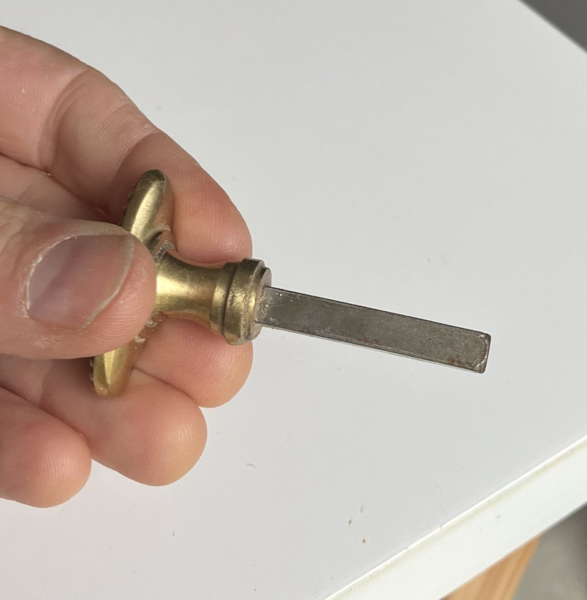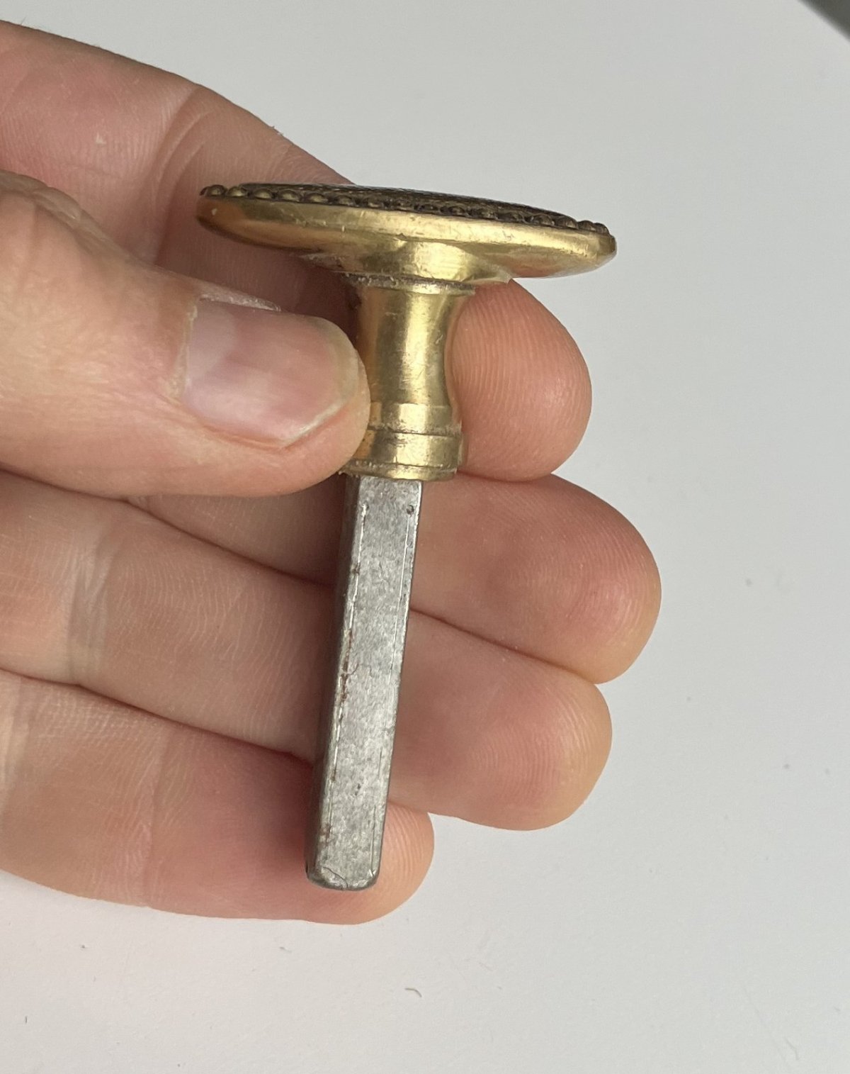 poignee olivette de verrou et carre 6 mm pour plaque de proprete avec verrou hauteur poignee 3,7 cm longueur du carre 35 mm expedition en lettre suivie Matière:Laiton