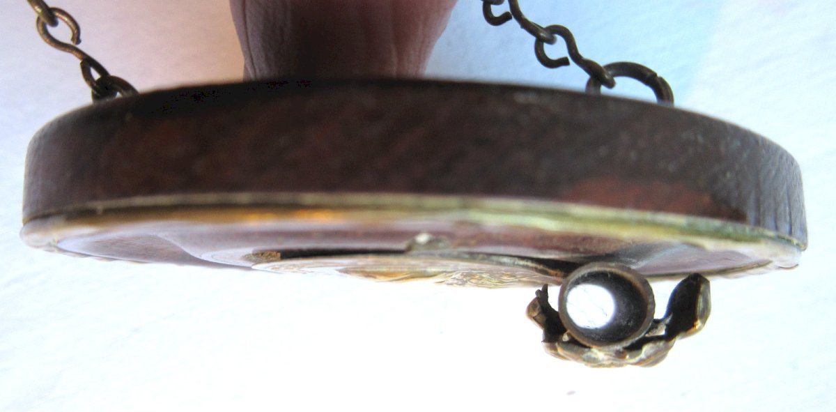 Porte-buis laiton, médaillon acajou style Napoléon III Sainte Thérèse de Lisieux