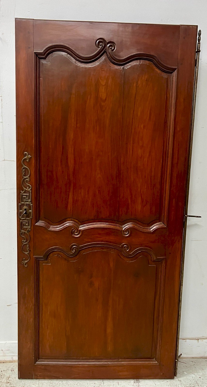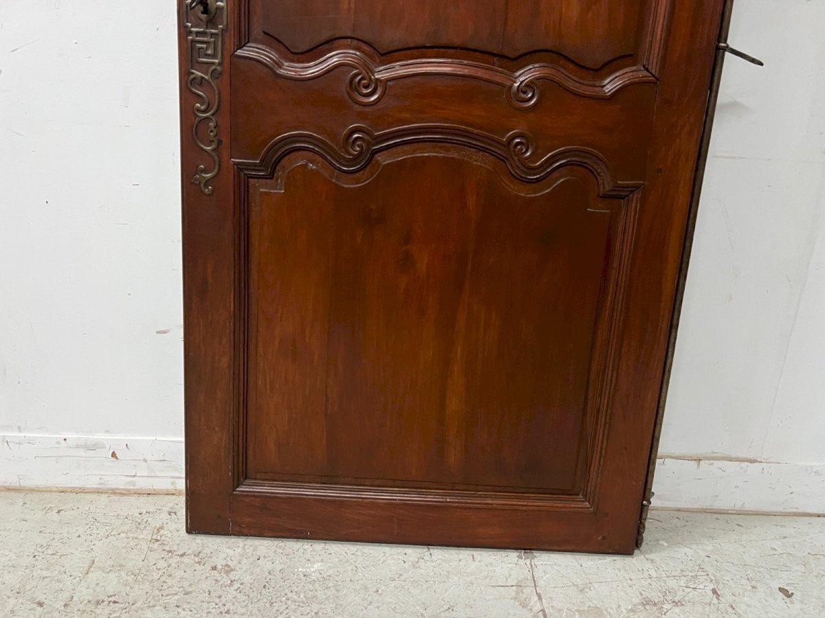 Porte de placard en merisier massif  Deux panneaux a encadrement mouluré et panneauté  Belle crémone en fer martelé  La clé et la serrure sont présentes Bon état  Dimension  H 182 x L 86 x 2 cm  Epoque XIX siècle Type:Porte Période:XIXème et avant Pays d'origine:France Hauteur:182 Matière:Bois Longueur:86 Largeur:2