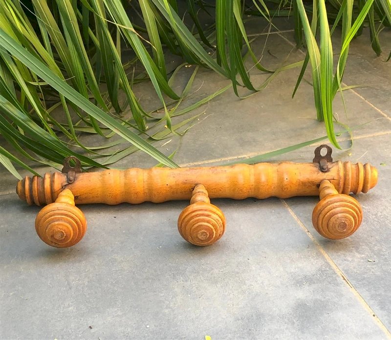 Porte manteaux ancien en bois 3 patères en très bon état général Dimensions 5*42 cm