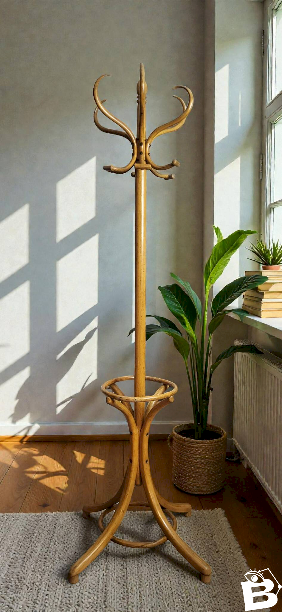 Porte manteaux perroquet Baumann / porte manteaux de Bar / Pieds Large servant à supporter du poids.Première moitié XXème / belle patine / Pied section carrée arrête arrondis.Hauteur 198 cmEmpiètement 53*56 cm Il est en bon état.