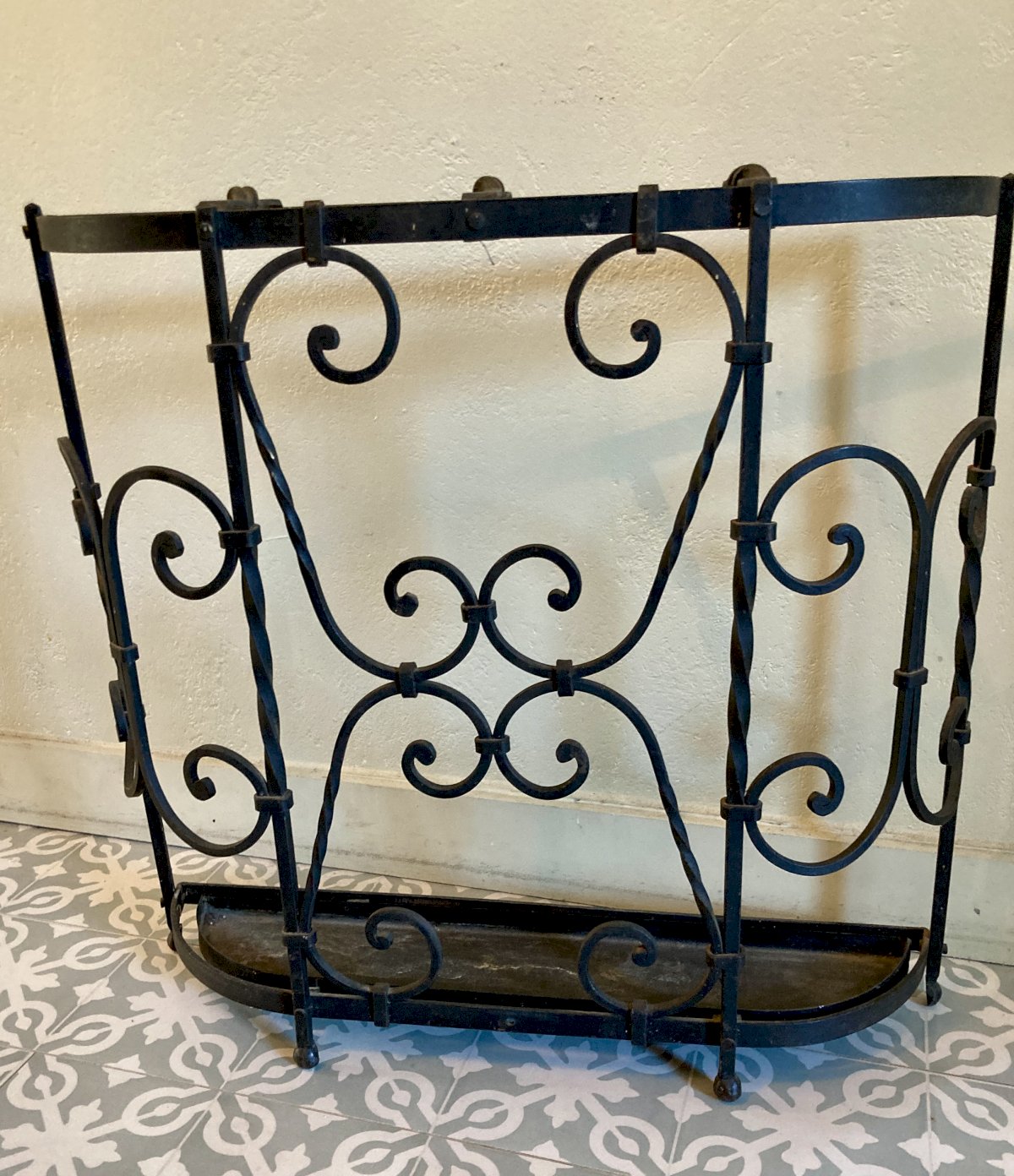 Porte parapluie - fer forgé - début XXe, travail de ferronnier sans soudure, L63 x P15 x H58,5. Très bon état d'usage.