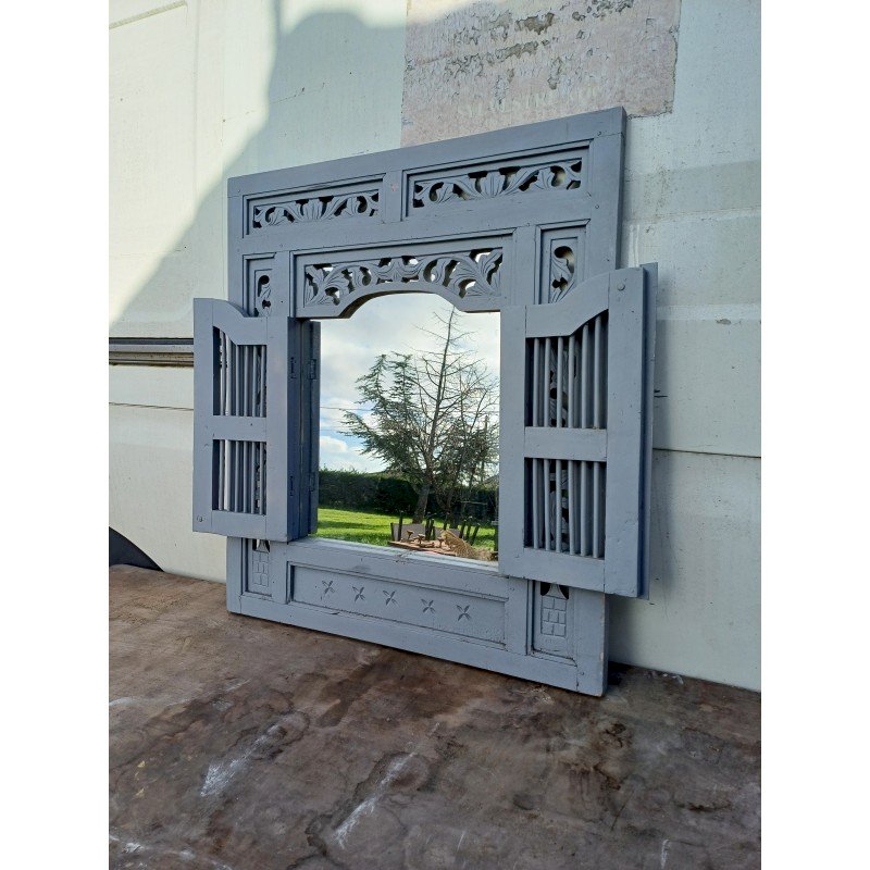 Portes Miroir Bois cérusé Gris , Haut : 91 cm , long et larg : 80 cm sur 3 cm , poids : 10 Kg , trés bon ètat