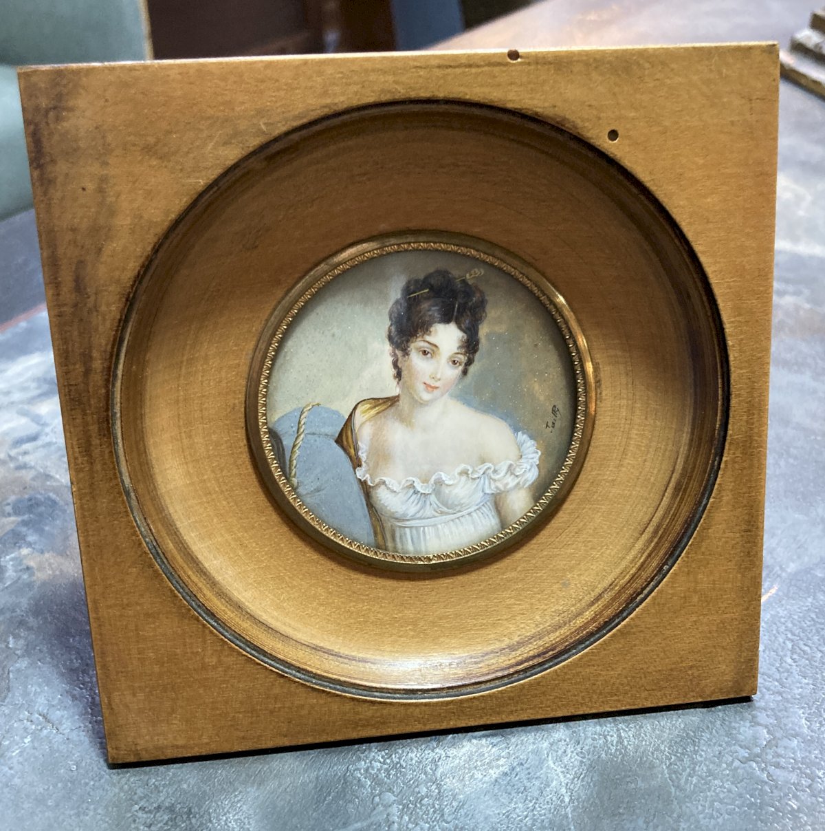 Portrait: Miniature dans le gout du XVIIIe. Le cadre mesure 13 x 13