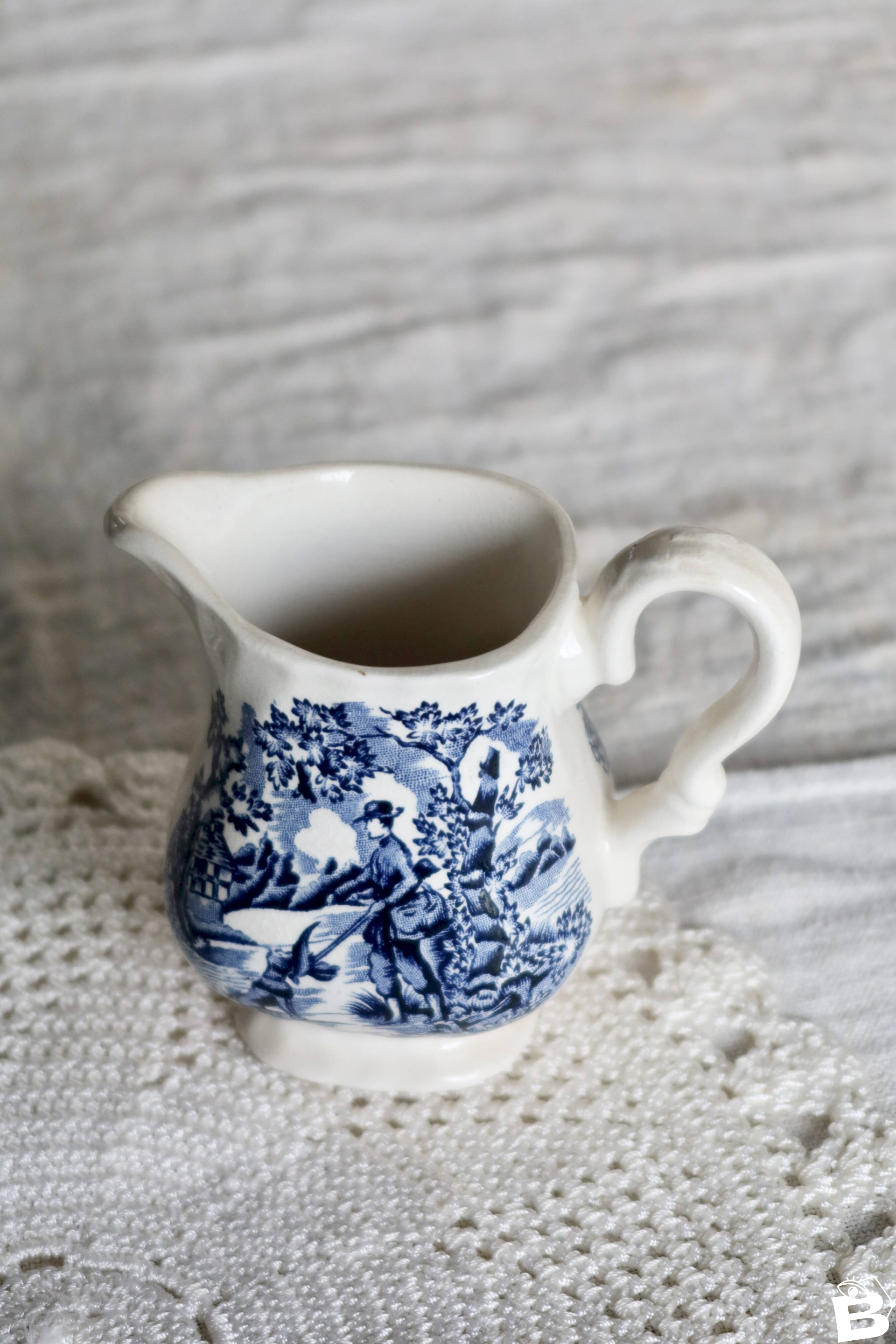 Pot à lait vintage en porcelaine anglaise The Hunter by Myott Bleu Céramique