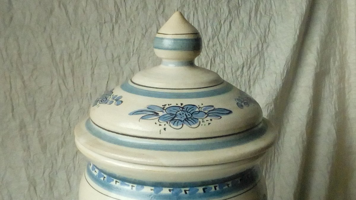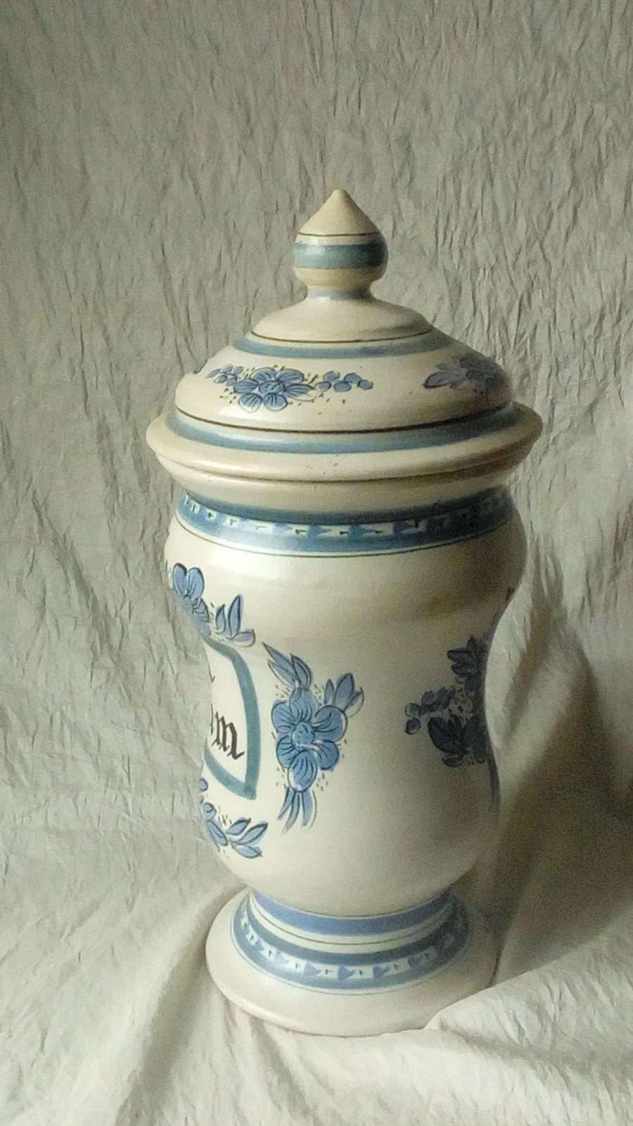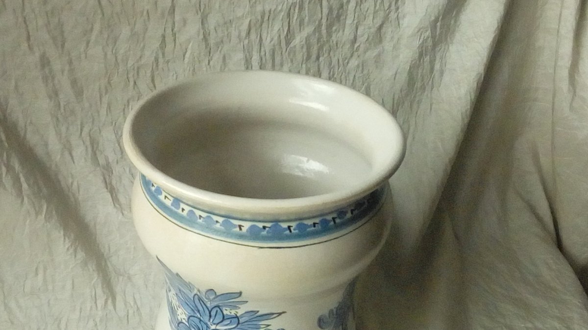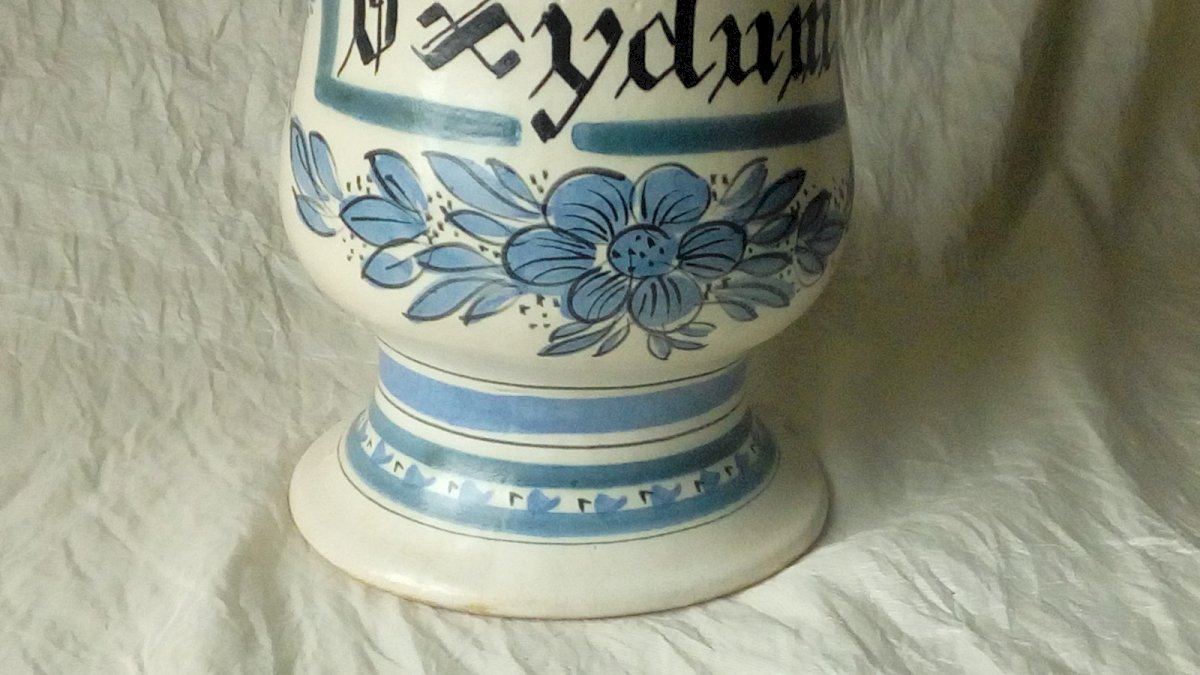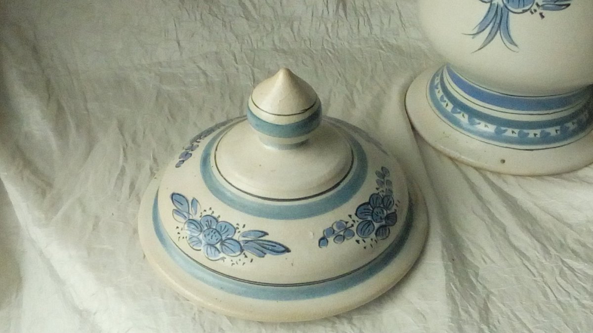 TRES BEAU POT A PHARMACIE EN CÉRAMIQUE POT APOTHICAIRE QUERALUC QUIMPER 20 EME HAUTEUR 34 cm DIAMETRE 14.50 cm EN BON ÉTAT Objet:Pot Pays d'origine:France