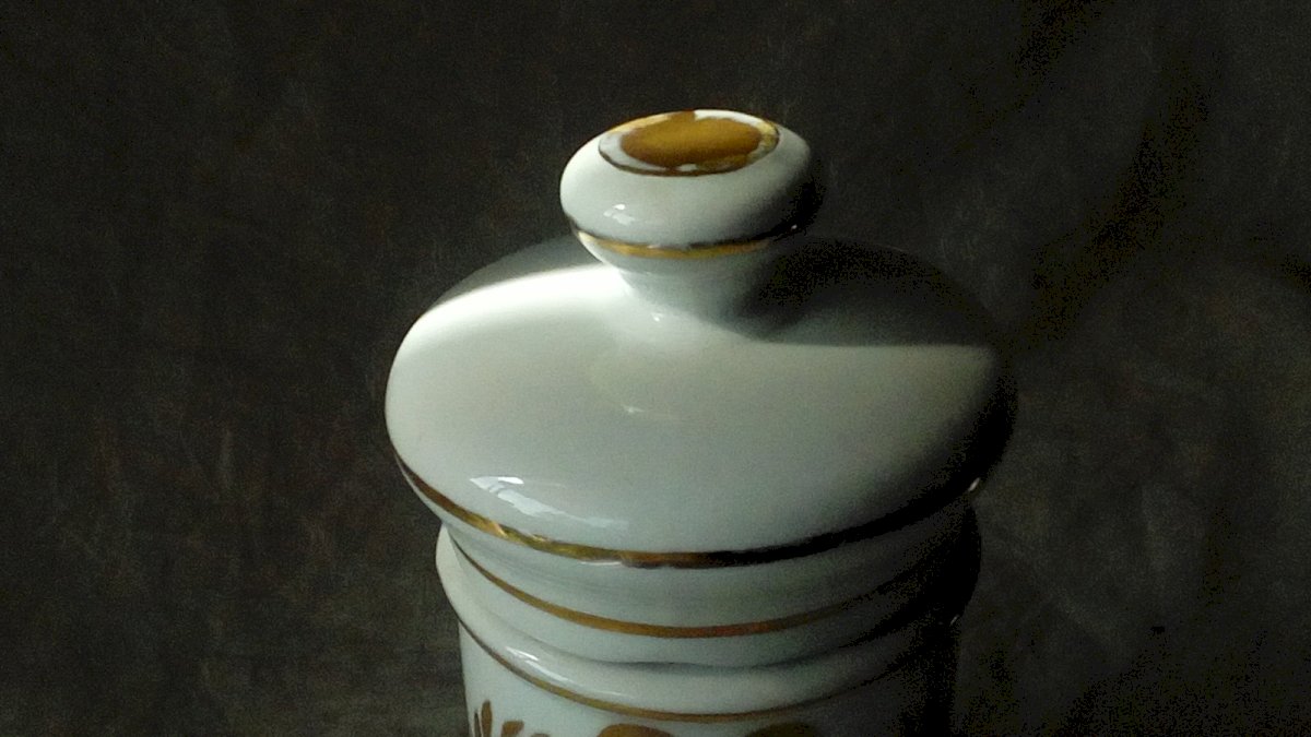 TRES BEAU POT A PHARMACIE POT D'APOTHICAIRE EN PORCELAINE PAPAVER  PAVOT PAS DE SIGNATURE HAUTEUR 18.50 cm LARGEUR 9 cm DIAMETRE 6.50 cm DORURE LEGEREMENT EFFACÉE VISIBLE SUR LES PHOTOS État:OccasionObjet ayant été utilisé. les éventuelles imperfections. Epoque:Après 1950 Type:PHARMACIE Sous-type:POT APOTHICAIRE Pays de fabrication:France Matière:PORCELAINE