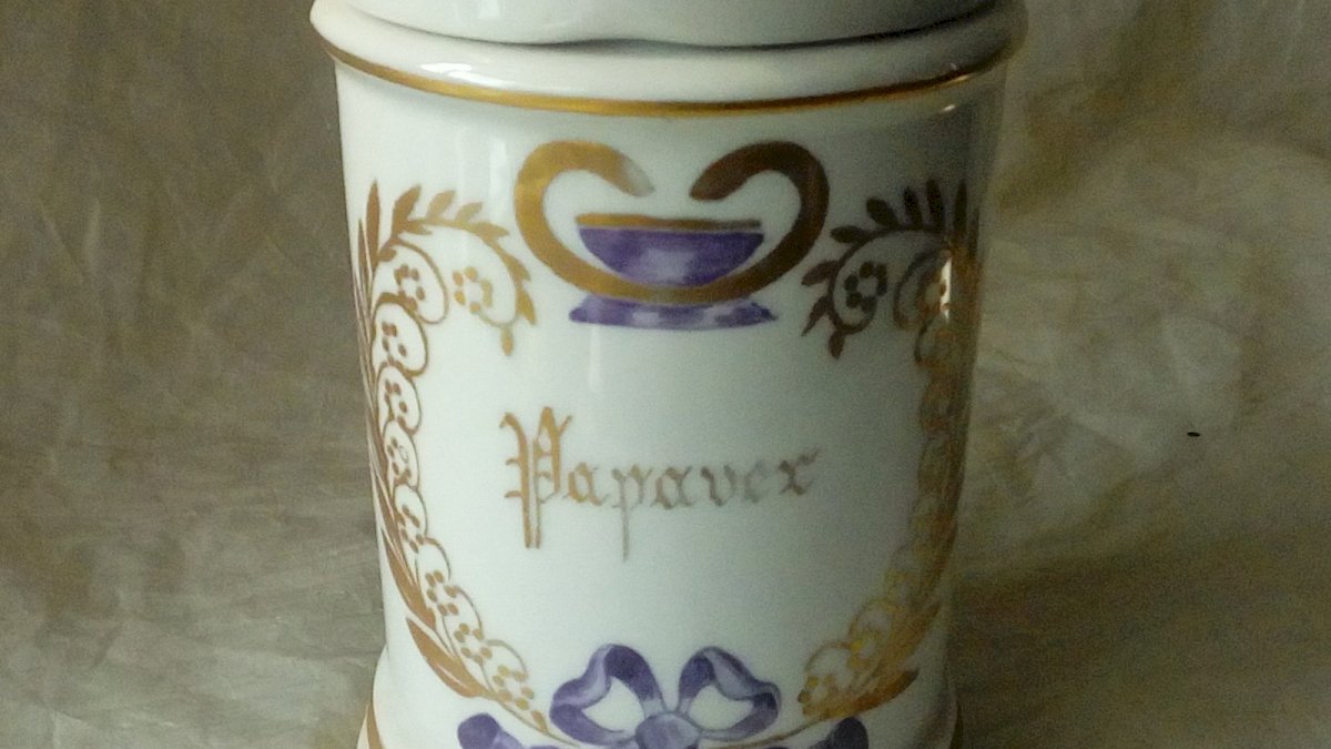 POT A PHARMACIE APOTHICAIRE EN PORCELAINE PAPAVER PAVOT**
