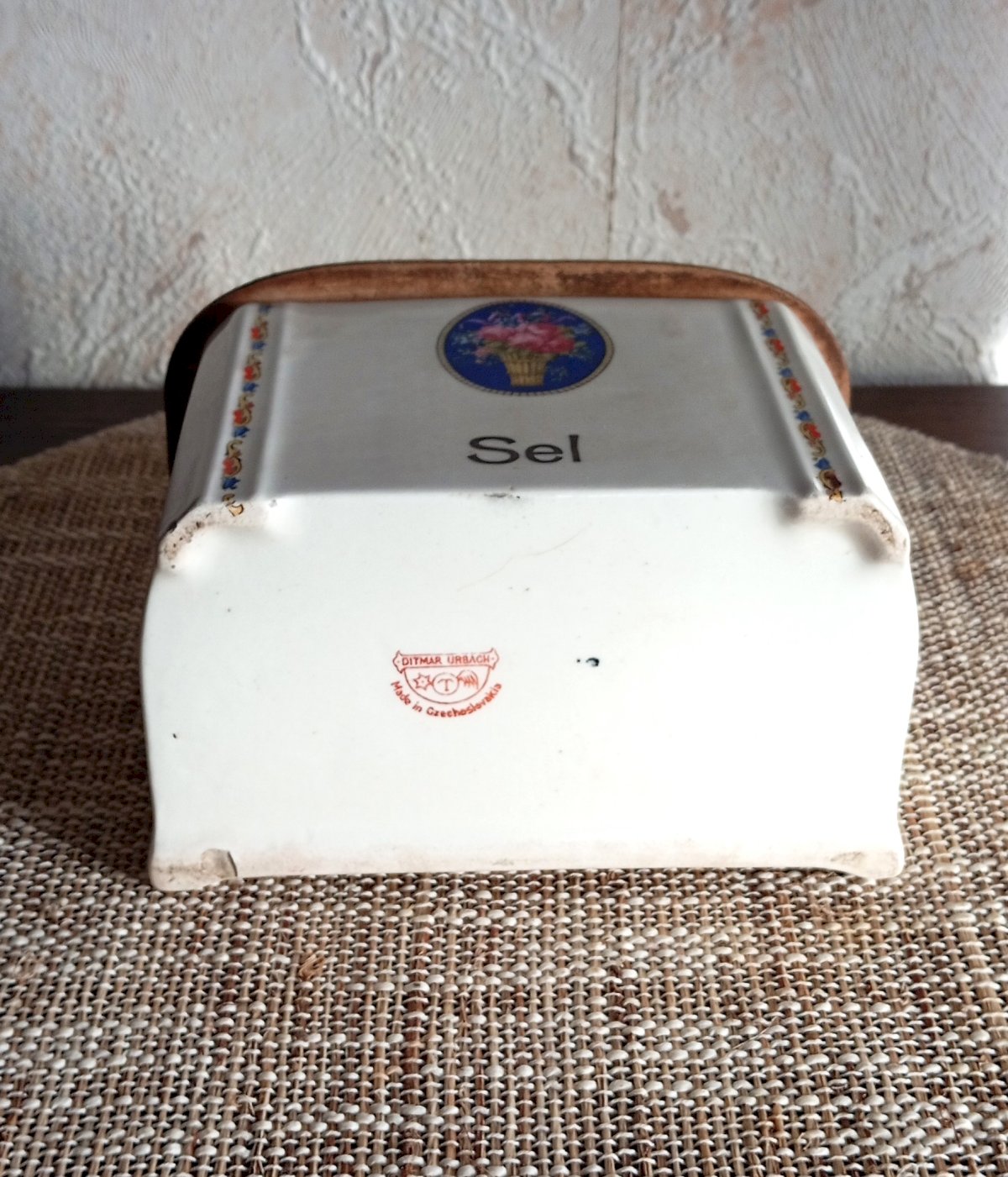 Ancien pot à sel en céramique de la manufacture DIMAR URBACH, fabriqué en Tchécoslovaquie.