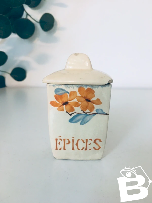 Petit pot ancien en faïence pour les épices Contenant bien conservé , éclats sur le couvercle Hauteur totale 9,5 cm 5,5 x 4 cm Pour deux articles achetés dans mon dressing, le troisième est offert ☺️( le moins cher des trois …) Me contacter pour l’achat d’un lot Réduction de frais de port possible pour les vases,les assiettes, les bols #retro #vintage #vaissellevintage #vaisselleancienne #vaisselleanglaise #artdeco #annees70 #boheme...
