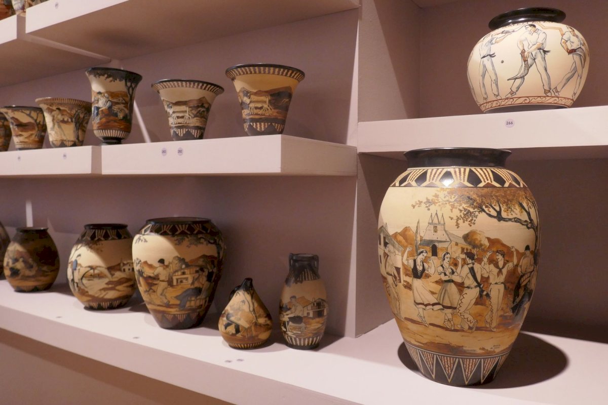 Poterie De Ciboure. Poterie de Ciboure en grès. Décor de femme basque à la fontaine avec