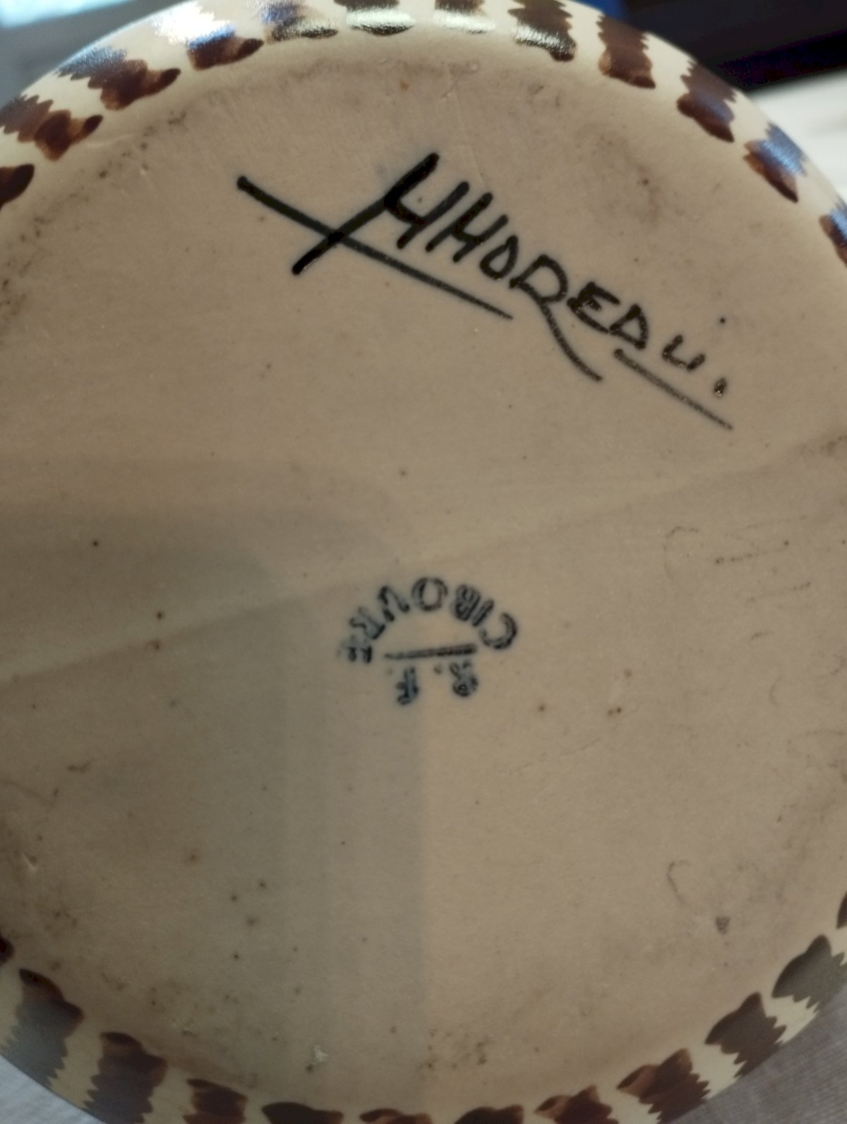 Ancien vase en grès tourné vernissé Décor floral signé Lemay, poterie de Novacelles en bel etat