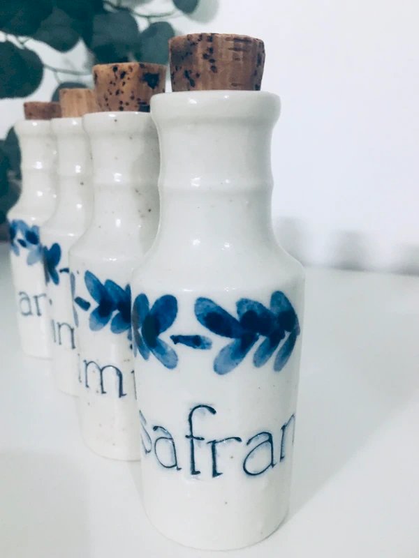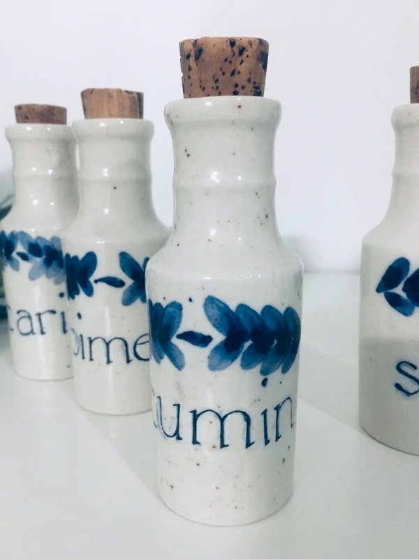 4 pots à épices en céramique avec bouchons en liège Ils sont en très bon état Hauteur 12,5 cm sans bouchon Pour Cari, piment, safran et cumin Pour deux articles achetés dans mon dressing, le troisième est offert ☺️( le moins cher des trois …) Me contacter pour l’achat d’un lot Réduction de frais de port possible pour les vases,les assiettes, les bols #retro #vintage #vaissellevintage #vaisselleancienne #vaisselleanglaise #artdeco #annees70 #boheme...