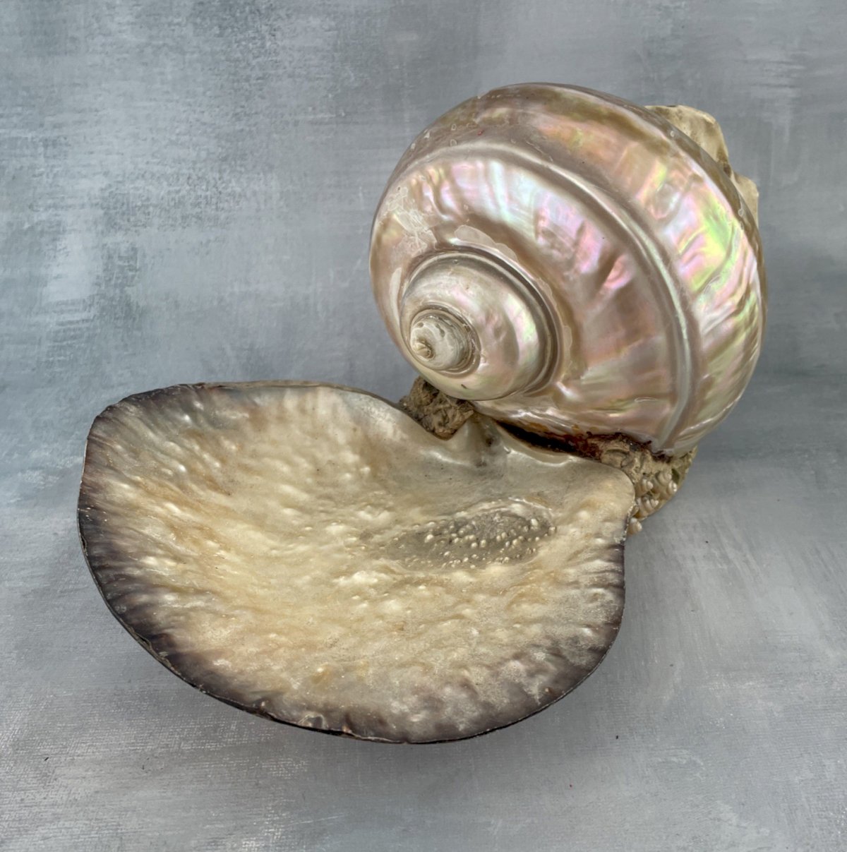Présentoir bijoux vide poche gros coquillage nacré turbo ? et coquille coupelle