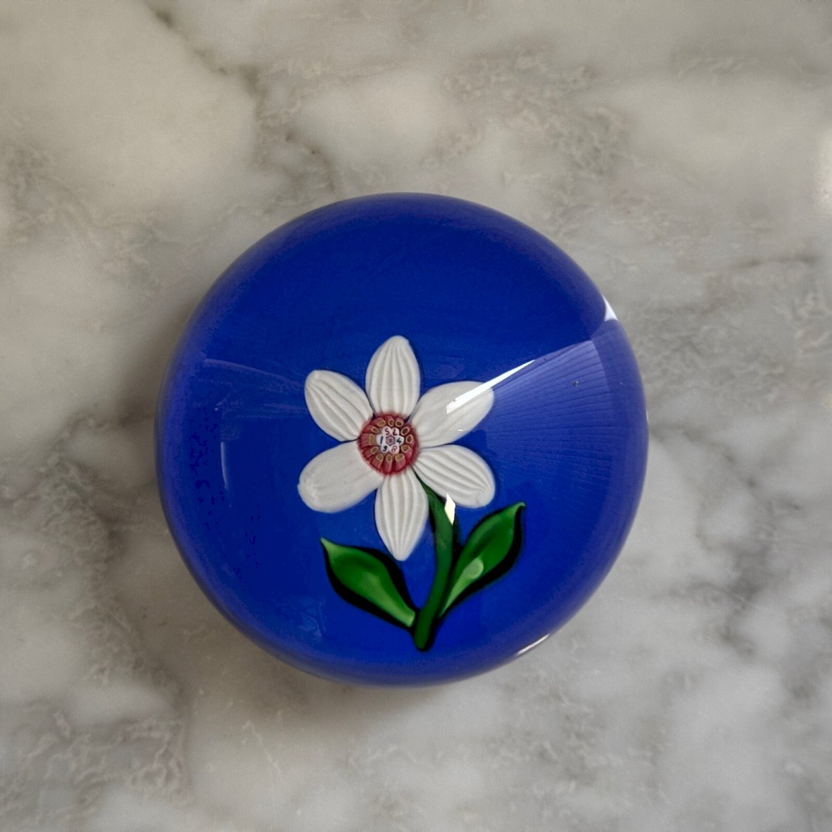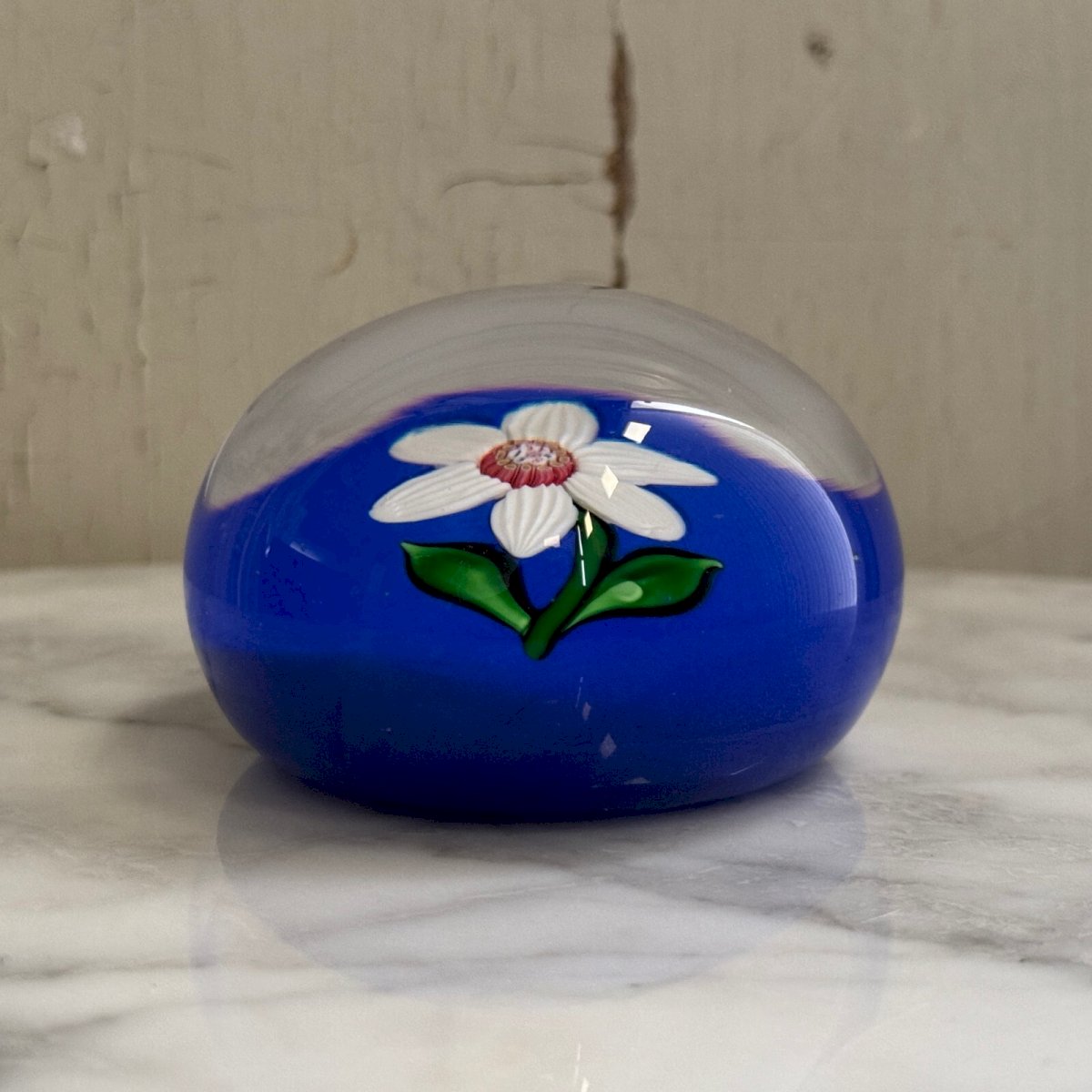 Presse-papier ou sulfure cristal Saint-Louis XXe SL 1984 fleur blanche M3566