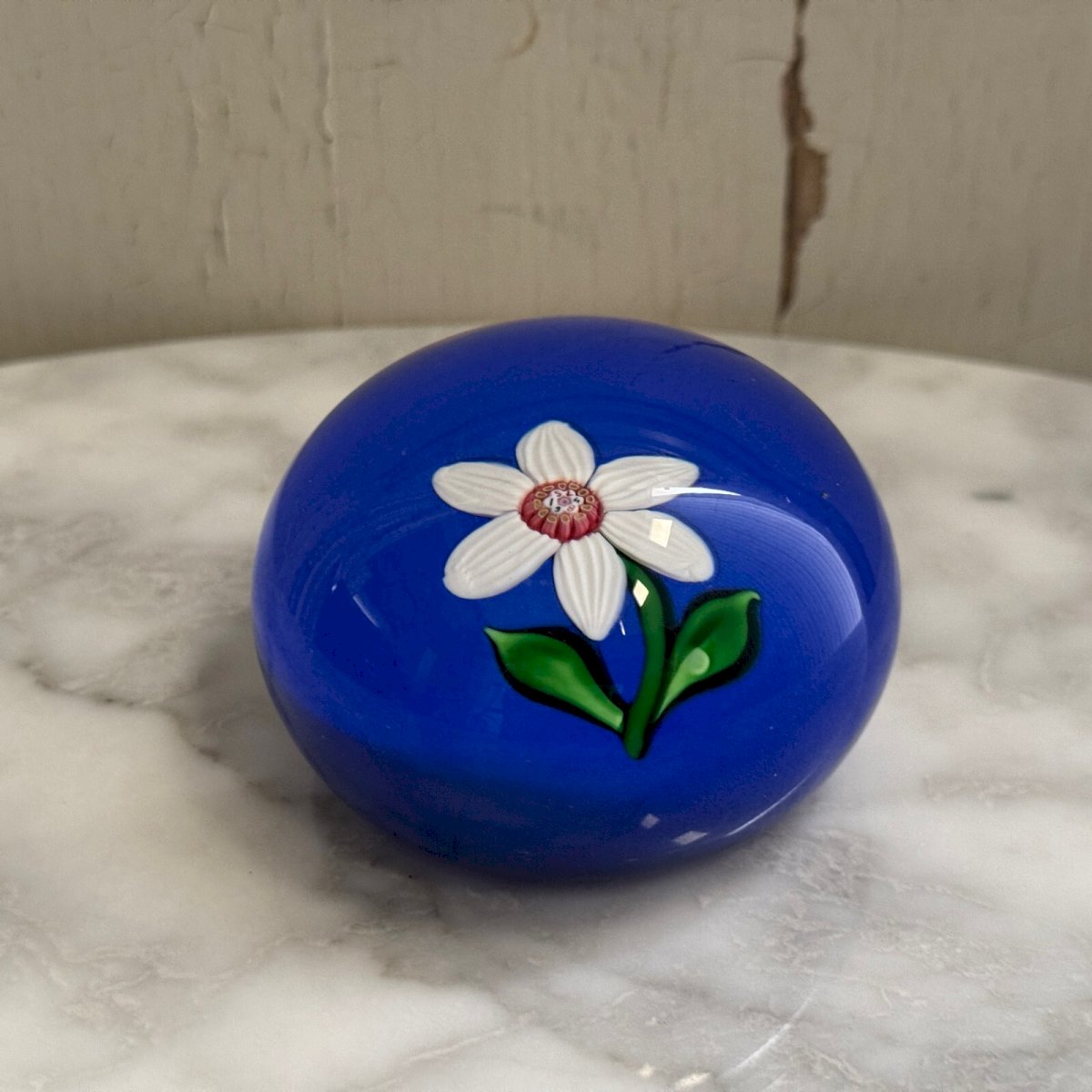 Presse-papier ou sulfure cristal Saint-Louis XXe SL 1984 fleur blanche M3566 Ce presse-papier sur fond bleu est décoré d'une fleur blanche, il a été réalisé par la prestigieuse maison Saint-Louis. Il porte la signature en son centre "SL1984". Il est en parfait état, notons des rayures d'usage en dessous, classique sur ce type d'objet. La Compagnie des Cristalleries de Saint-Louis est une manufacture française de cristal qui réalise des pièces dans les domaines de la décoration, des arts de la table, du luminaire et du mobilier. Fondée en 1586 dans la vallée de Münzthal en Moselle, elle est la plus ancienne cristallerie de France. Chaque jour, les pièces en cristal sont soufflées à la bouche, taillées et décorées à la main par les artisans de la cristallerie. Saint-Louis est la seule cristallerie au monde à réaliser des presse-papiers. Nos photos vous permettent d'apprécier la qualité de l'objet. Pour l'état, merci de bien détailler les photos. N'hésitez pas à zoomer . Les photos font partie intégrante de la description. Dimensions : Hauteur : 5 cm Diamètre : 7 cm A :  I9WFUGPZ9I P :  1557367   Je reste à votre disposition pour toute question.