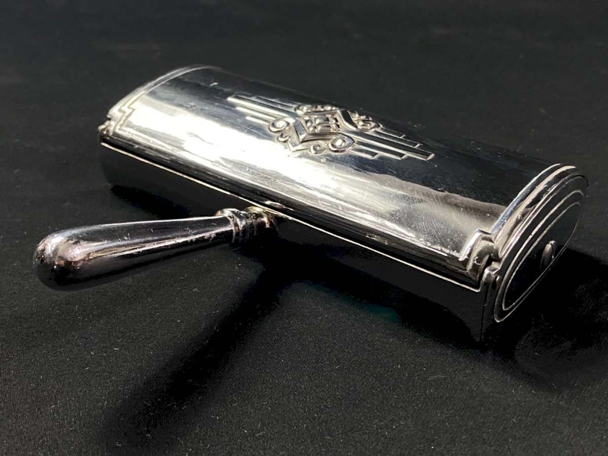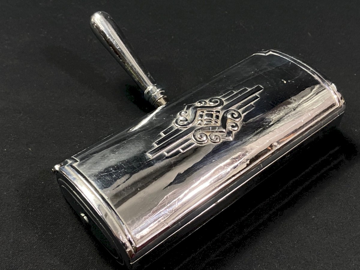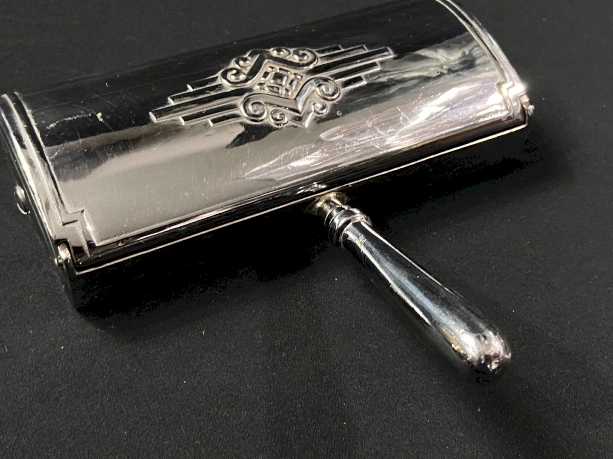 Ramasse-miettes de table en métal chromé milieu XXe Dimensions max : Envergure 15,3 x 14,3 x 3,3 cm Poids : 632 grammes Je relève la présence de traces d'oxydations au revers Envoi TRES soigné dans le monde entier Authenticité:Original Type:Arts de la table, Cuisine Période:Design du XXème Origine:France Sous-type:Ramasse-miettes Pays d'origine:France Matière:Métal Style:1940-1960