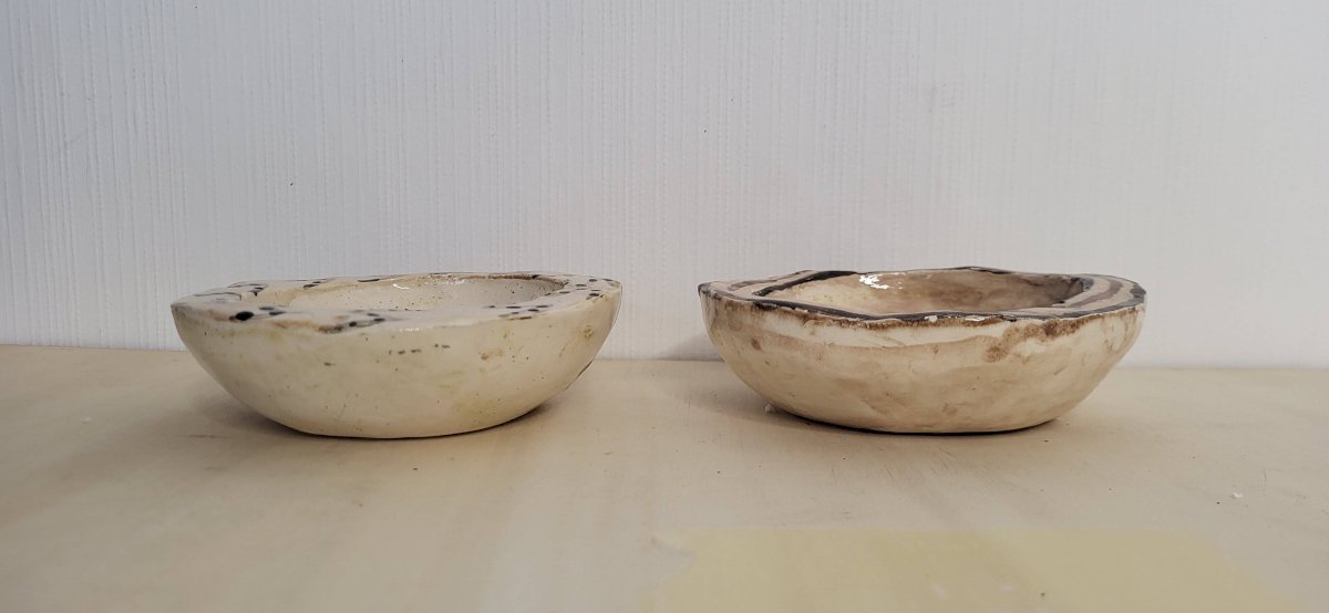Lot de 2 Ramequins en terre cuite skinazy paris.Hauteur 3, 5 cm.Diamètre 12 cm.En bon état avec traces d'usage et d'ancienneté habituelles.Emballage soigné et livraison rapide.