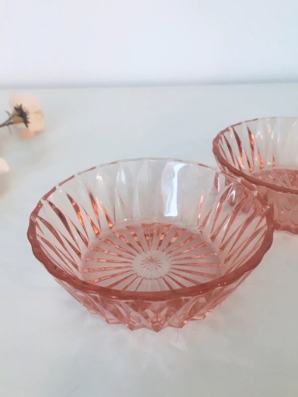 2 ramequins vintage en verre rose Fabrication française Hauteur 3,5 cm Diamètre 10,5 cm Excellent état Pour deux articles achetés dans mon dressing, le troisième est offert ☺️( le moins cher des trois …) Me contacter pour l’achat d’un lot Réduction de frais de port possible pour les vases,les assiettes, les bols#retro#vintage#vaissellevintage#vaisselleancienne#vaisselleanglaise#artdeco#annees70#boheme