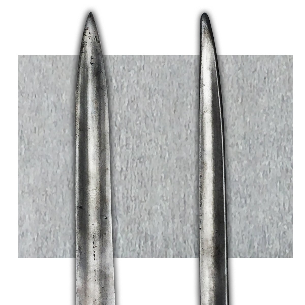 Ne manquez pas cette superbe et rare dague épée française Colichemarde, qui pourra aisément décorer votre vitrine destinée aux armes blanches de l'armée française et en devenir la pièce maîtresse