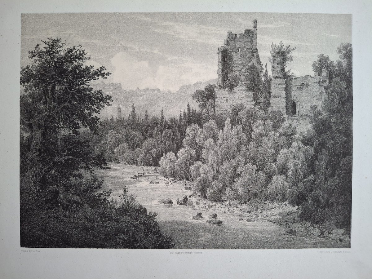 Rare Gravure vue du château de Boringes près de Annemasse Haute Savoie original de 1866 très bon état