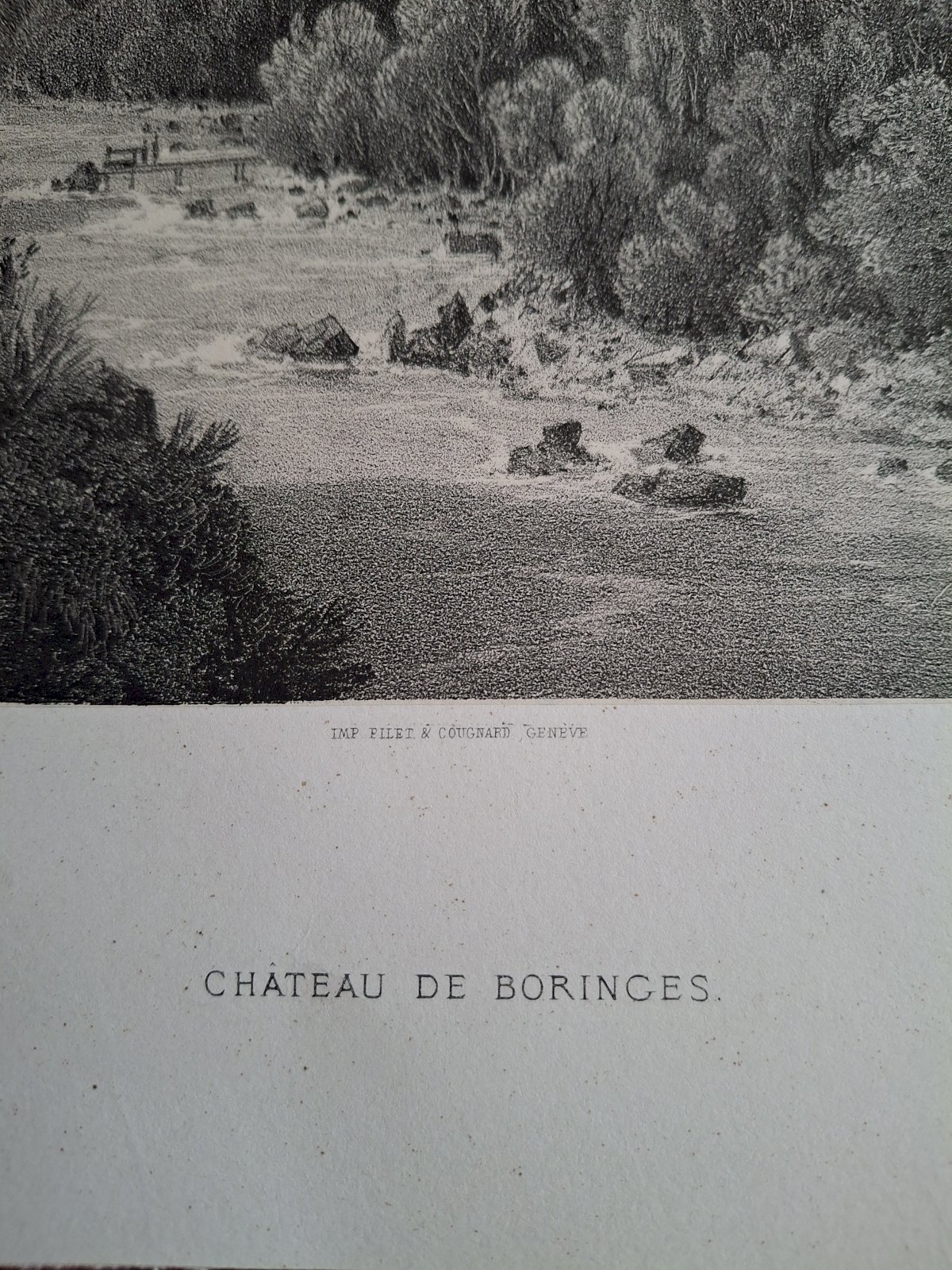 Gravure vue du château de Boringes Haute Savoie.