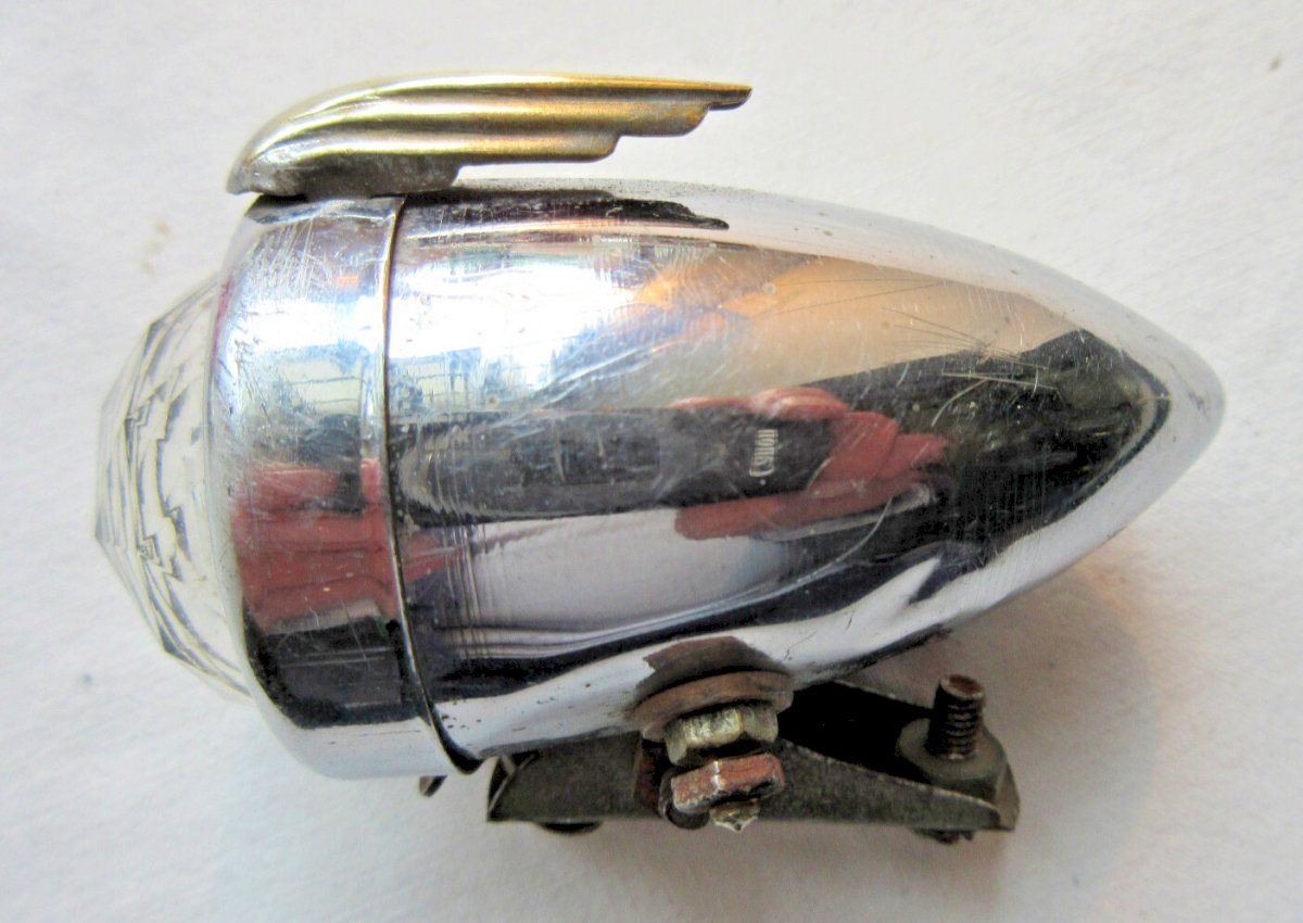 RARE Phare de vélo d'enfant 1940 - 50, métal chromé et laiton, verre à facettes