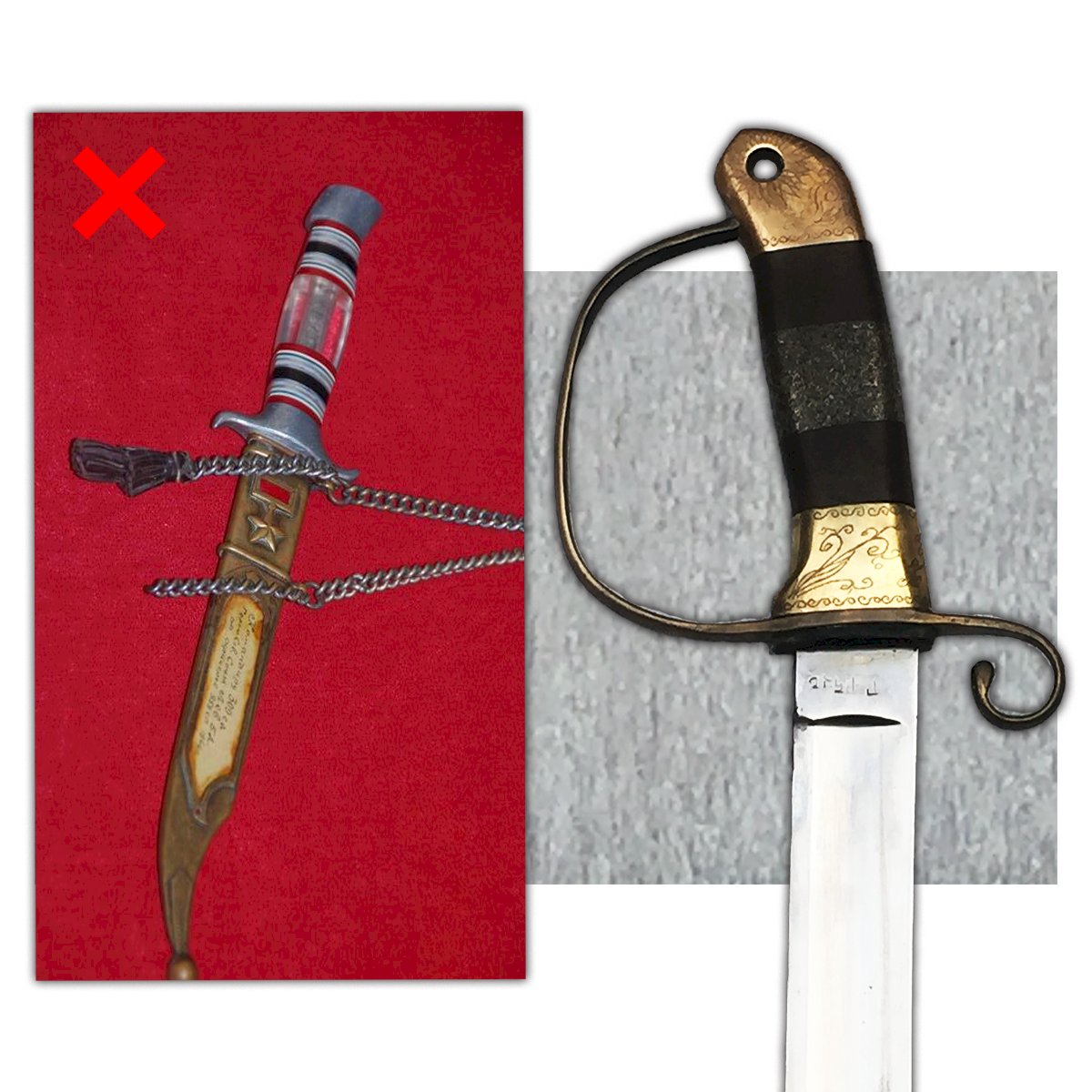 J'ai acquis ce magnifique sabre pour ma collection, mais je m'en sépare pour des raisons financières et j'espère qu'il trouvera une place de choix dans la vitrine d'un autre passionné. Les informations complémentaires, relatives à cette pièce, se trouvent dans les ouvrages de A.N. Kulinski ainsi que dans la gazette des armes N° 107, de juillet 1982