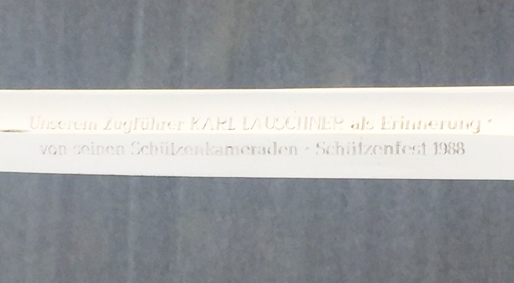 Voici un magnifique sabre d'officier allemand chef de train allemagne de l'est, cadeau du régiment de fusiliers. La lame et le fourreau sont en bel état. Lame sublime brillante gravée : '' Unseren Zugfuhrer KARL LAUSCHNER als Erinnerung - '' À la mémoire de notre chef de train, Karl Lauschner, par ses camarades fusiliers, Festival des fusiliers 1988 ''). La poignée est en galuchat avec un triple filigrane. Le fourreau est en acier à un anneau, chromé gravé. Avec sa dragonne et son porte-épée. Superbe pièce, très agréable à tenir en mains et encore plus à observer en vitrine, 100% original garantie !