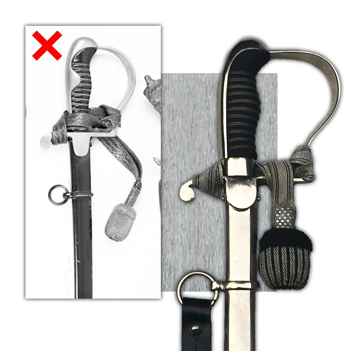 Superbe sabre allemand dit '' à la Blucher ''. En vigueur dans la cavalerie et l'infanterie prusienne. Basé sur le modèle 1811, qui a été utilisé depuis les guerres napoléonniennes (notamment à Waterloo) jusqu'au milieu du 20ième siècle. Ce sabre a été largement inspiré par le modèle anglais dit '' Modèle 1796 '' , avec la forme de la garde typique et la lame courbe, qui dit-on, faisait des ravages dans l'armée française.