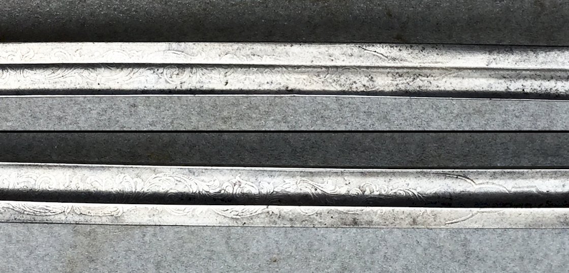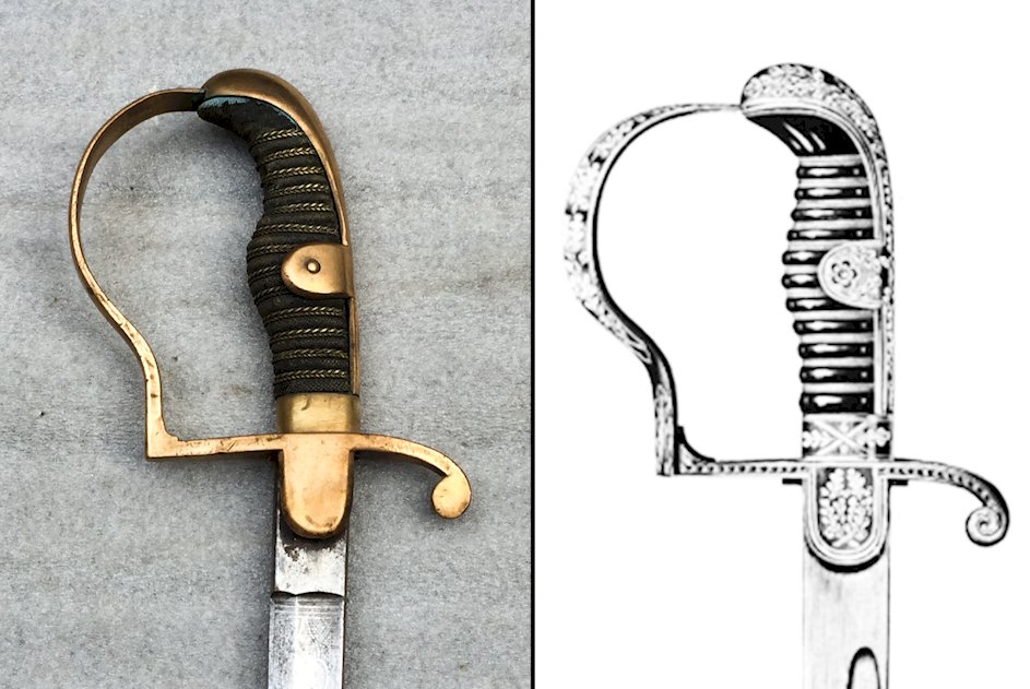 Superbe sabre allemand dit '' à la Blucher ''. En vigueur dans la cavalerie et l'infanterie prusienne. Basé sur le modèle 1811, qui a été utilisé depuis les guerres napoléonniennes (notamment à Waterloo) jusqu'au milieu du 20ième siècle. Ce sabre a été largement inspiré par le modèle anglais dit '' Modèle 1796 '' , avec la forme de la garde typique et la lame courbe, qui dit-on, faisait des ravages dans l'armée française.