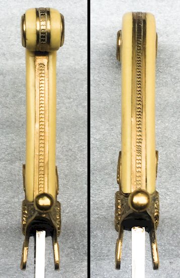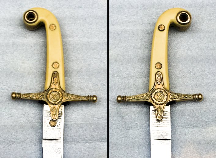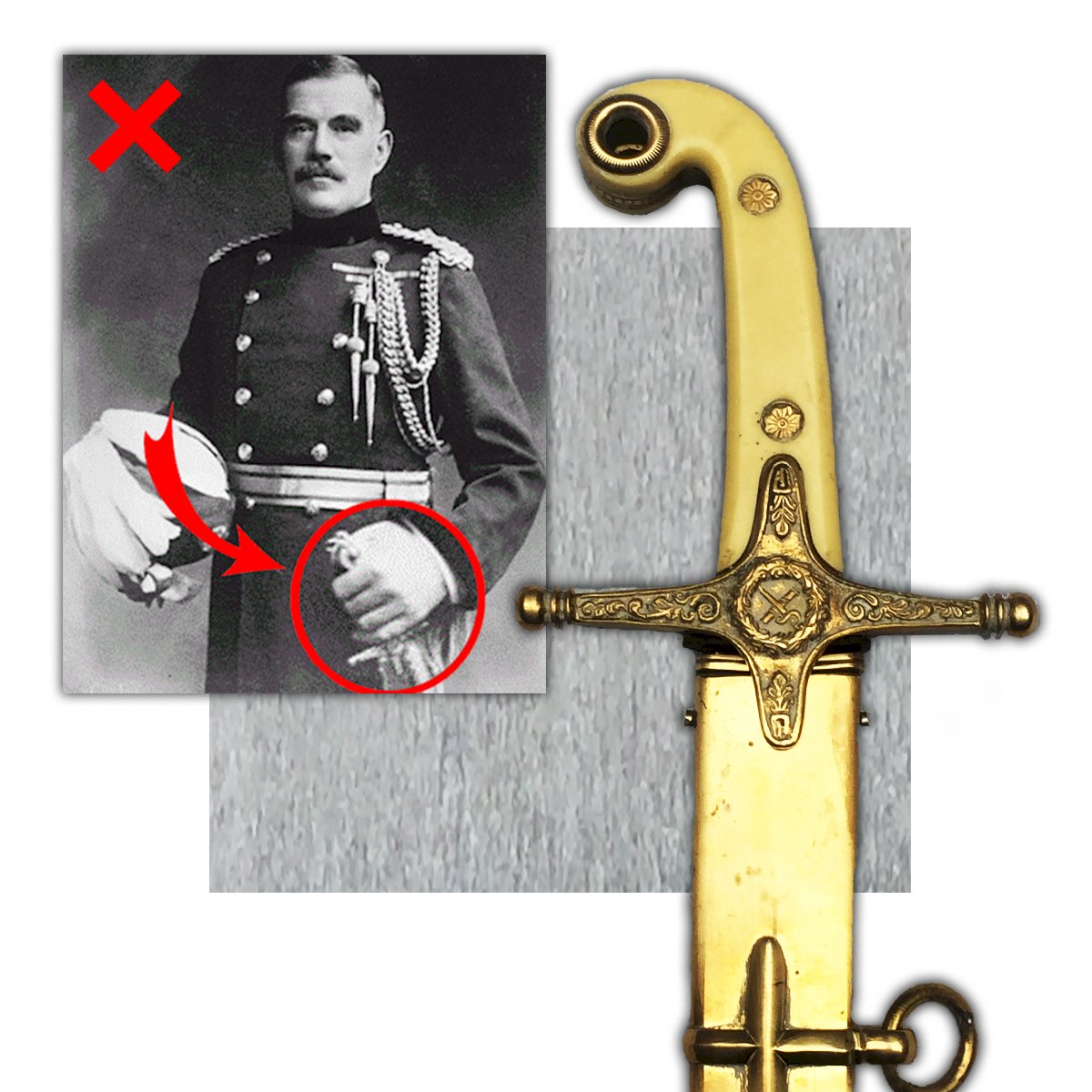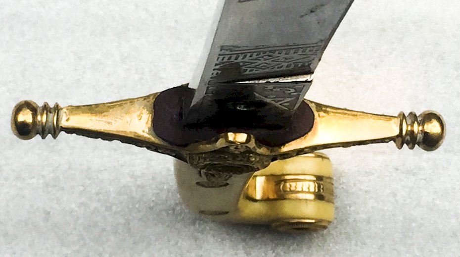 Extrêmement rare et beau sabre de la marine britannique pour parade, datant du 20e siècle (1970-80). Poignée blanche avec rivets dorés, décorée de fleurs. Lame marquée '' PROVED '' encore visible ! Lame gravée se terminant en langue de carpe (rare) dans son jus, à nettoyer. Pièce sublime et très rare dans son jus ! Très agréable à tenir en mains et encore plus à observer en vitrine ! Très rare are et belle pièce !