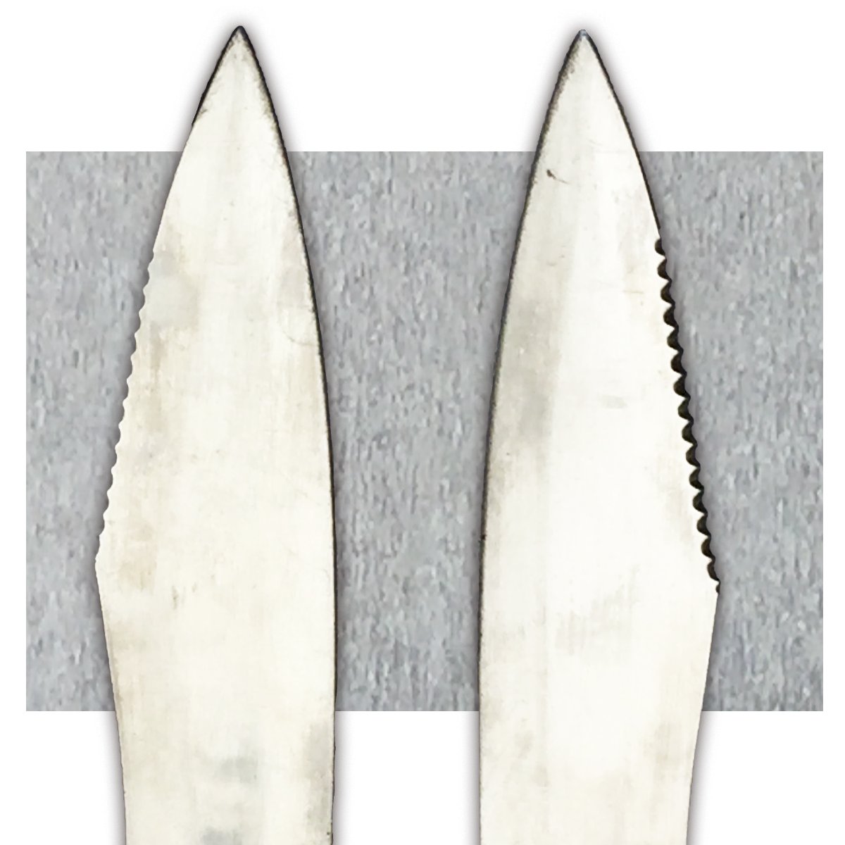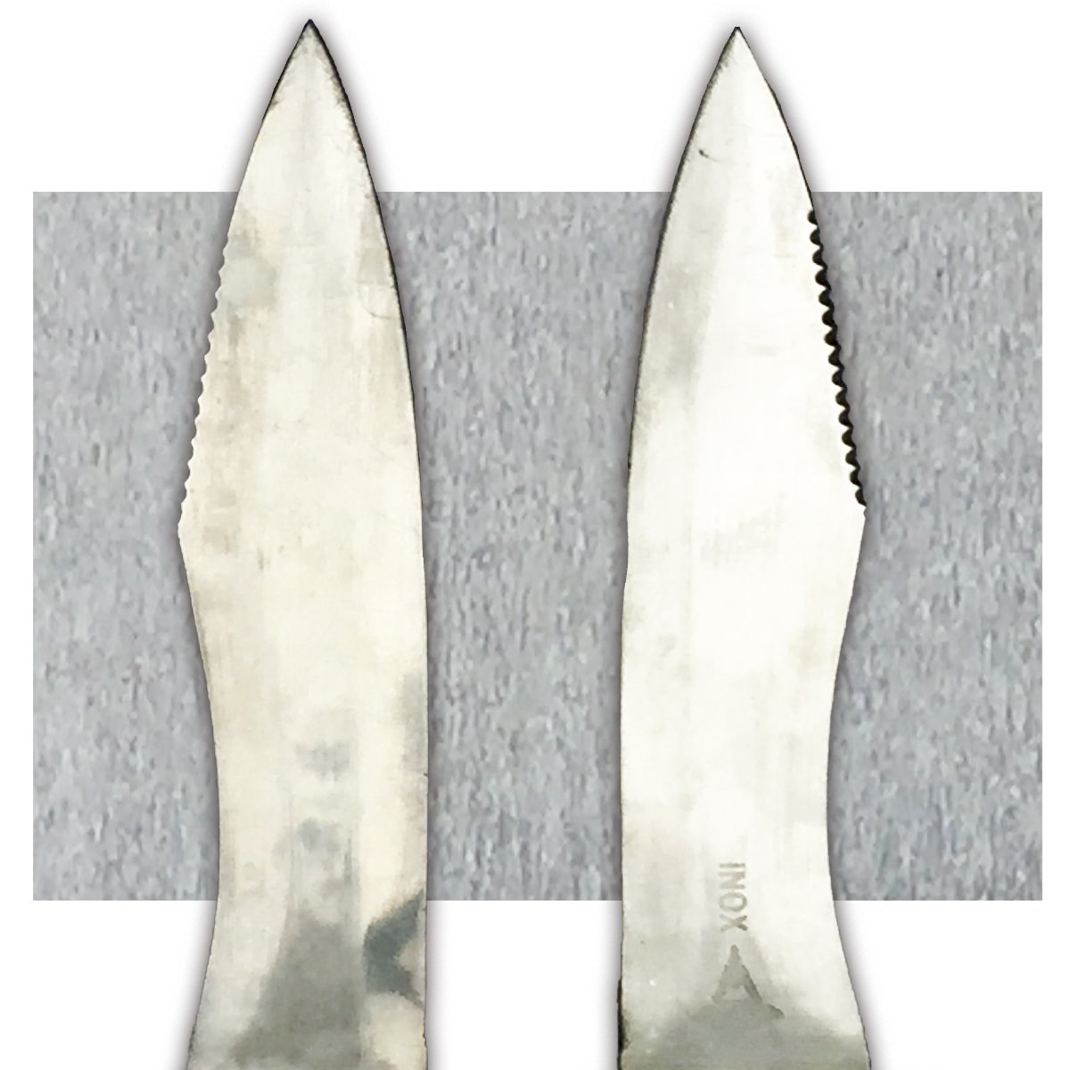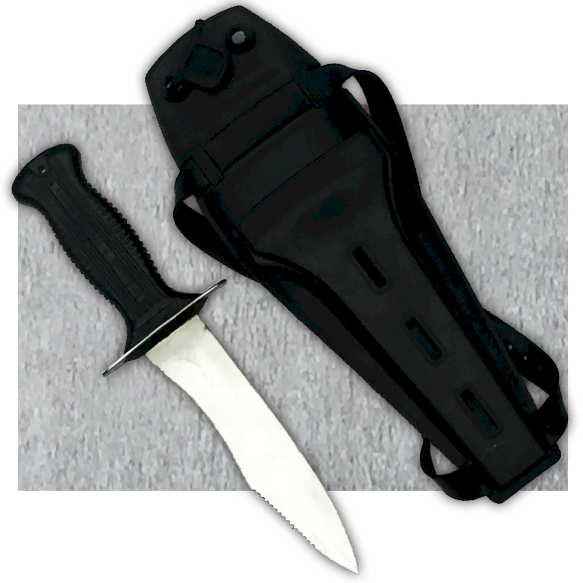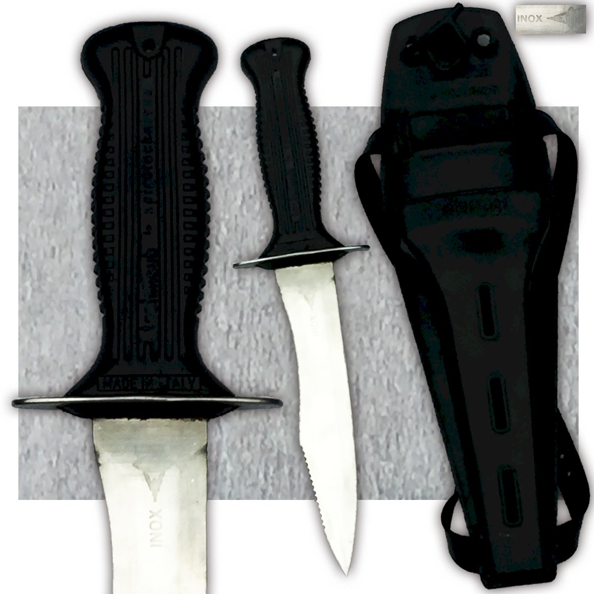 Tres rare couteau version militaire de plongeur scaphandrier conçu pour le déminage (acier spécial). Il s'agit de la version réglementaire, utilisée par les plongeurs démineurs (minentaucher et kampfschwimmer) avec le scaphandre draeger dm 220. D'après son ancien propriétaire, le couteau serait inspiré des modèles allemands dans les années 50-60 (à vérifier).