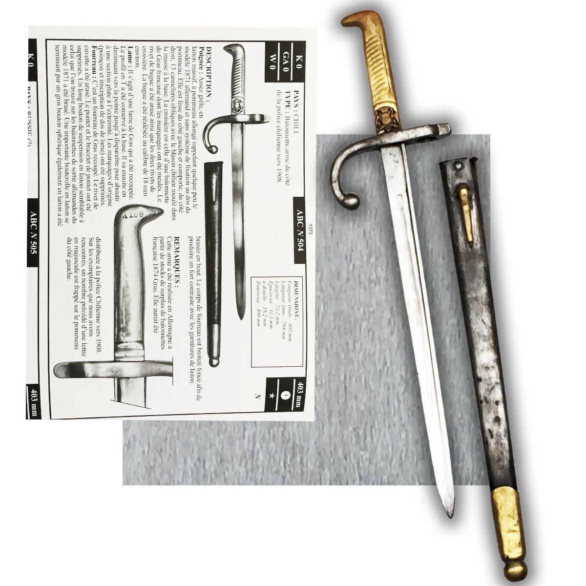 RARISSIME BAIONNETTE DE LA POLICE CHILIENNE M1874 ALEX COPPEL XIX WW1 ORIGINAL Bronze/Métal