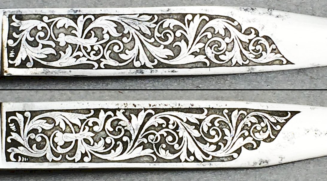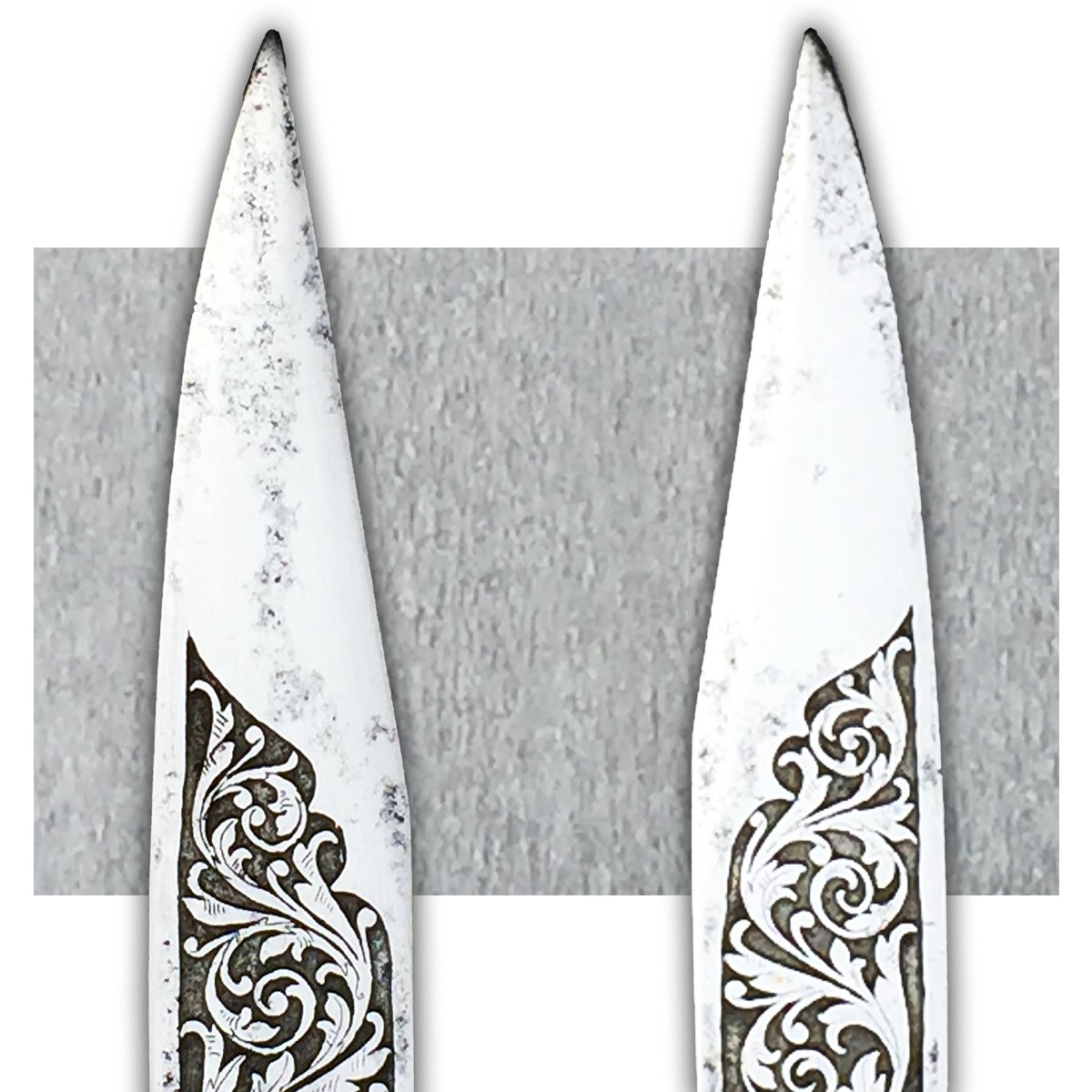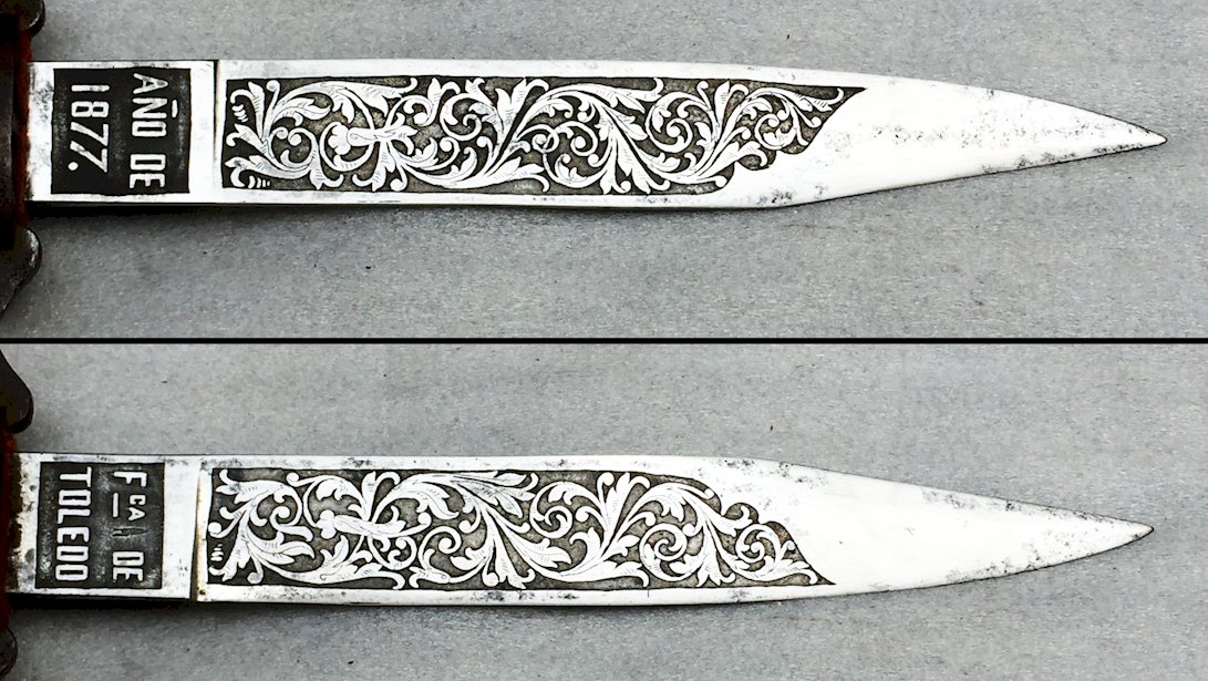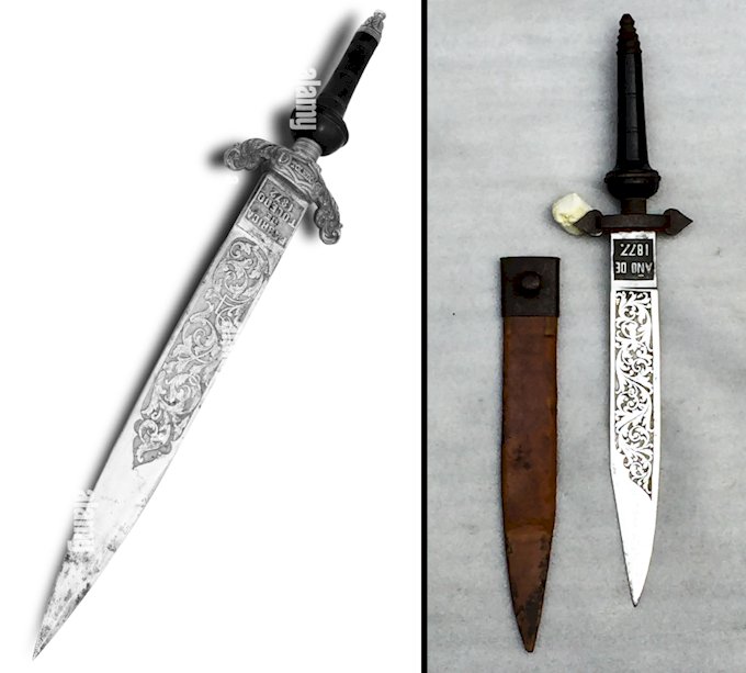 En achetant cette luexeuse et très rare dague de TOLEDO, vous placerez dans votre vitrine un témoignage inestimable et rare de l'histoire du royaume d'Espagne, mais aussi celle des meilleurs armuriers de TOLEDO du XIX siècles. Magnifique et RARISSIME pièce, n'attendez pas