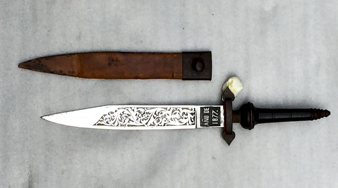 RARISSIME & SUPERBE DAGUE / GLAIVE ARGENTINE, TYPE GAUCHO, XIX, ENTIÈREMENT GRAVÉ, ORIGINAL