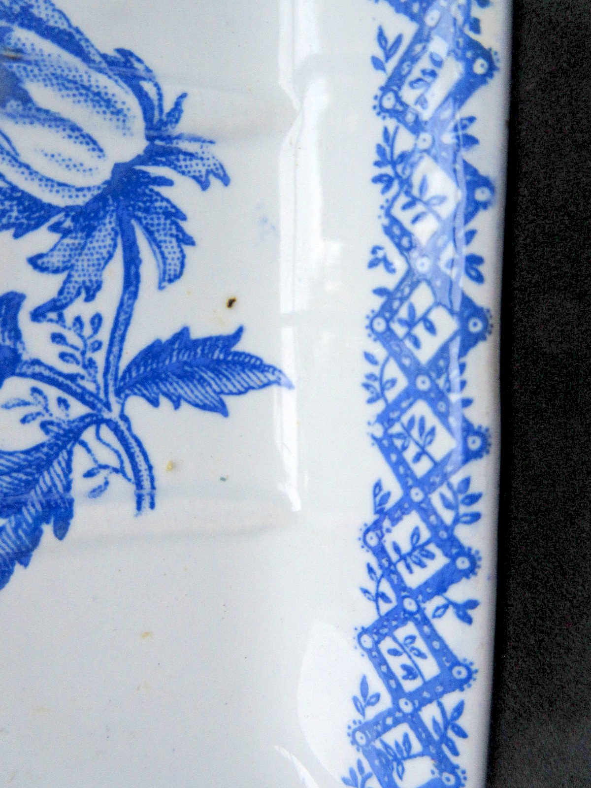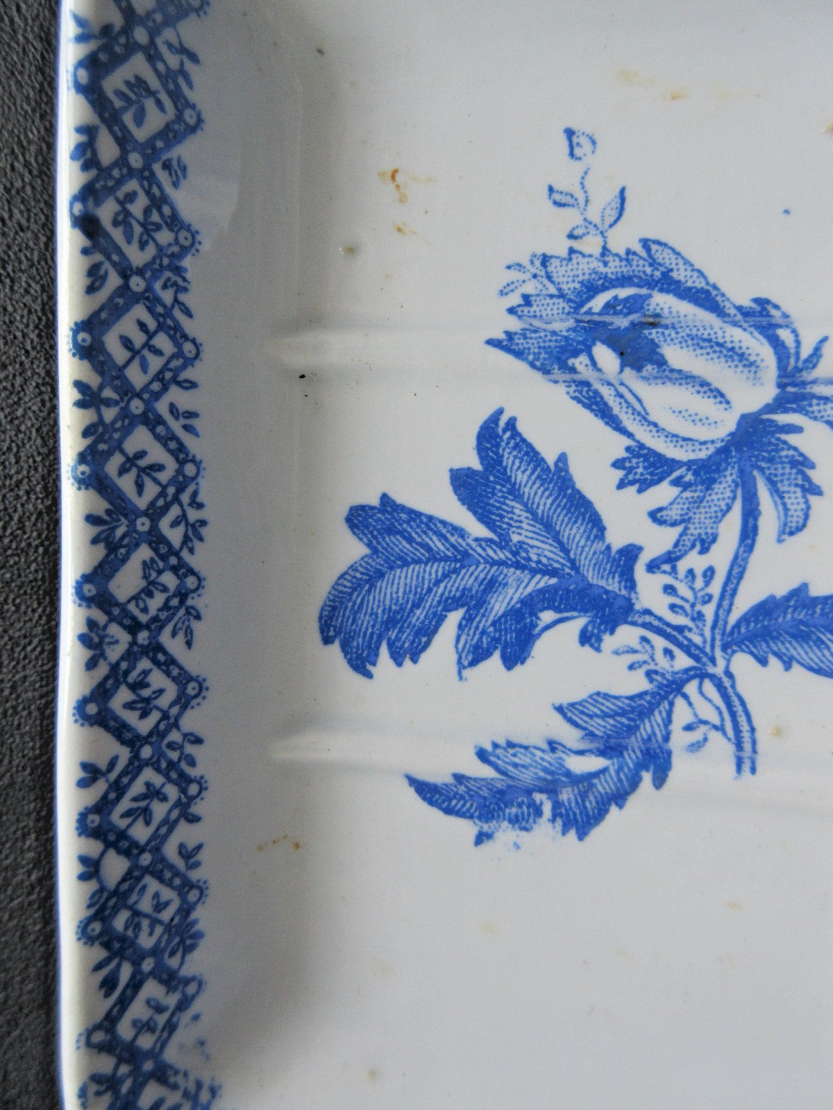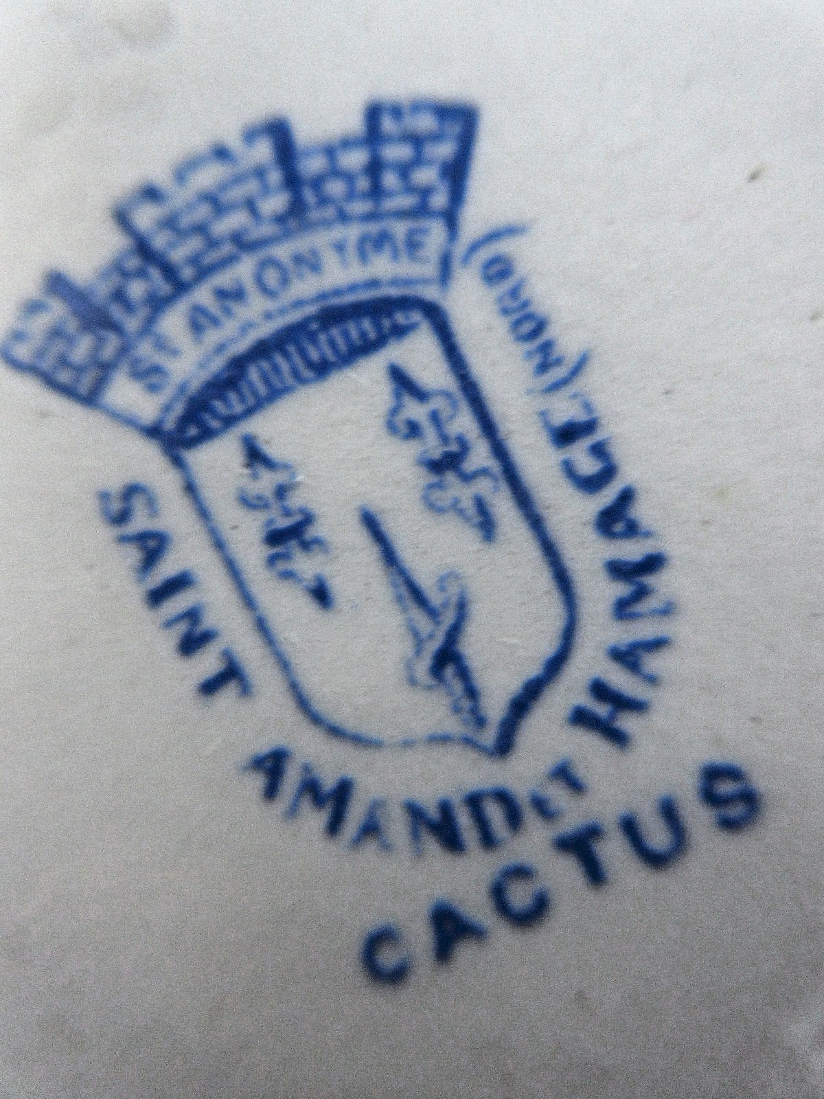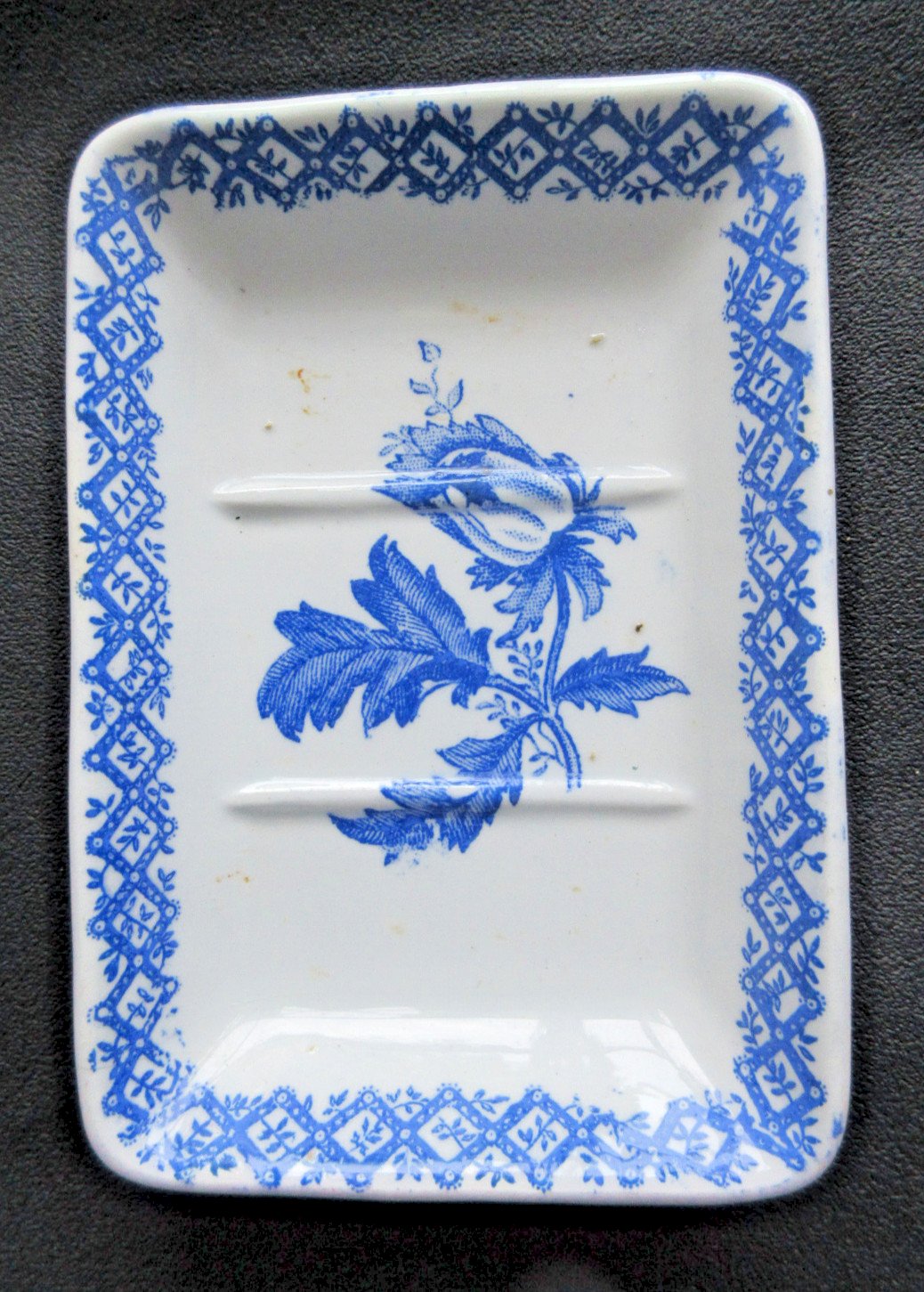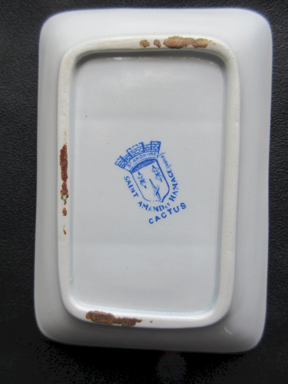 Ravier de toilette à savon, décor bleu de St Amand Hamage: Cactus