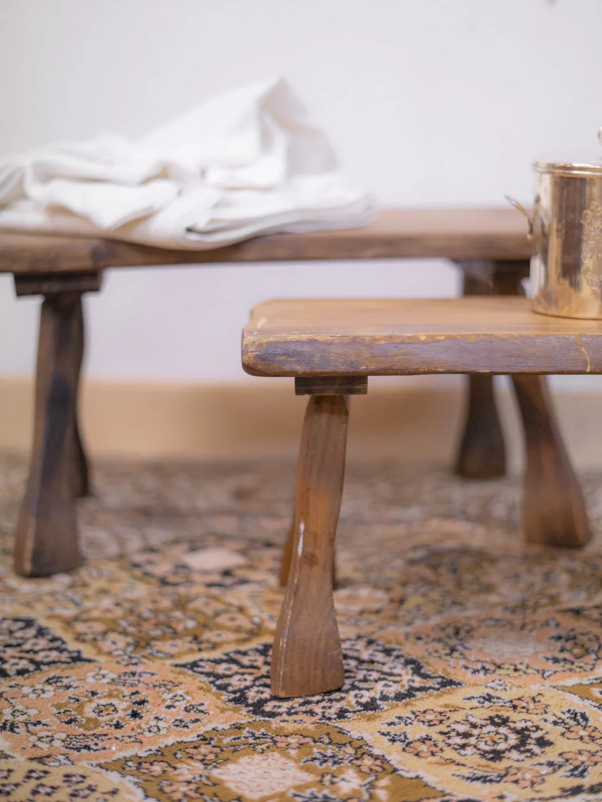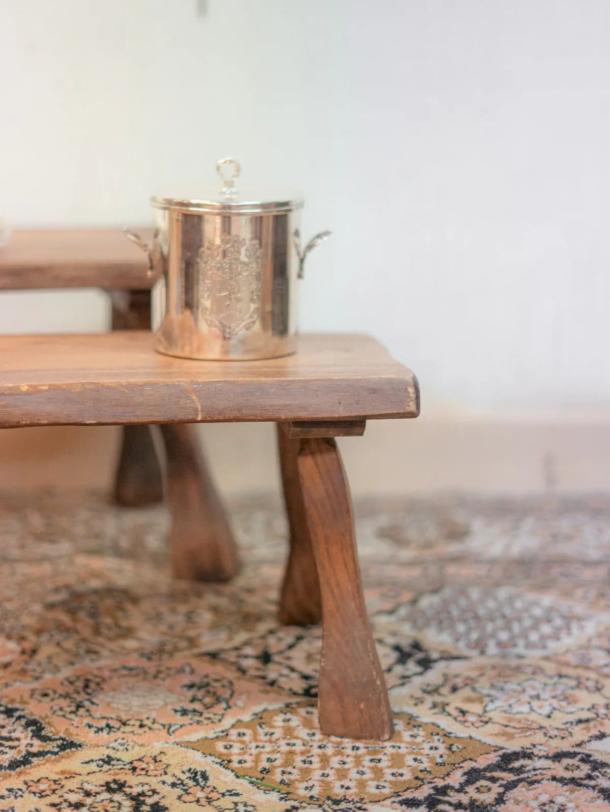 Apportez une note singulière à votre intérieur avec cette paire de petits tabourets en bois au style brutaliste. Massifs et épurés, ils mettent en valeur la beauté de la matière et la simplicité des formes, à l’image du design brutaliste. Confortables et pratiques, ces tabourets trouveront leur place dans une cuisine, un salon ou un coin cosy, séduisant ceux qui aiment le mobilier vintage au charme brut et authentique. Dimension du grand tabouret Longueur : 61 cm Largeur : 31 cm Hauteur : 32 cm Dimension du petit tabouret Longueur : 40,5 cm Largeur : 26 cm Hauteur : 27 cm État:Occasion: Objet ayant été utilisé. Objet présentant quelques marques d'usure superficielle, ...Occasion: Objet ayant été utilisé. Objet présentant quelques marques d'usure superficielle, entièrement opérationnel et fonctionnant correctement. Il peut s'agir d'un modèle de démonstration ou d'un objet retourné en magasin après une courte période d'utilisation. les éventuelles imperfections. Couleur:Multicolore Hauteur:Campagne Largeur:Bois Longueur:Tabourets bas Marque:Debongout Type:Produit chiné Matière:Bois Style:Campagne Assemblage requis:Non Niveau dassemblage:Entièrement assemblé