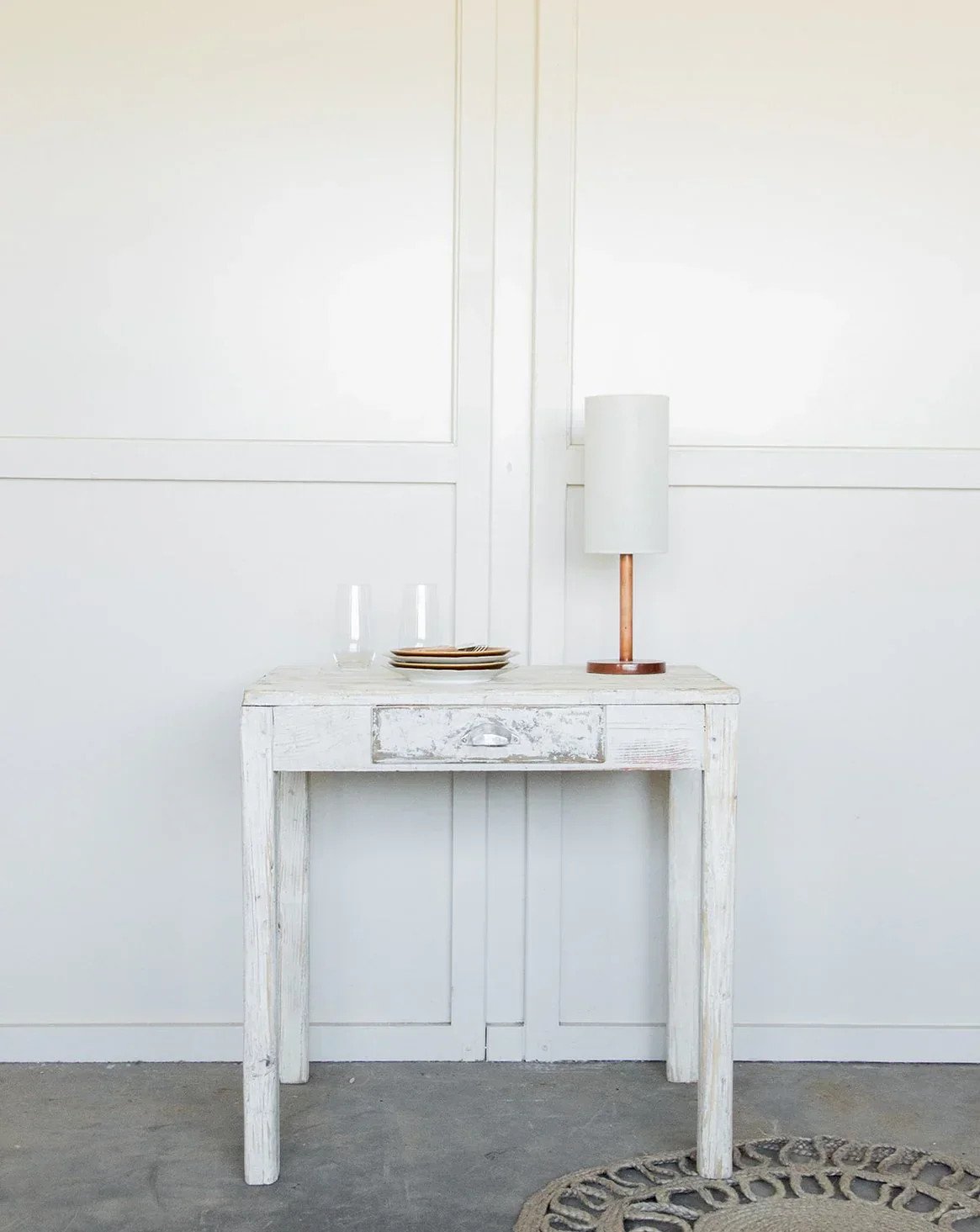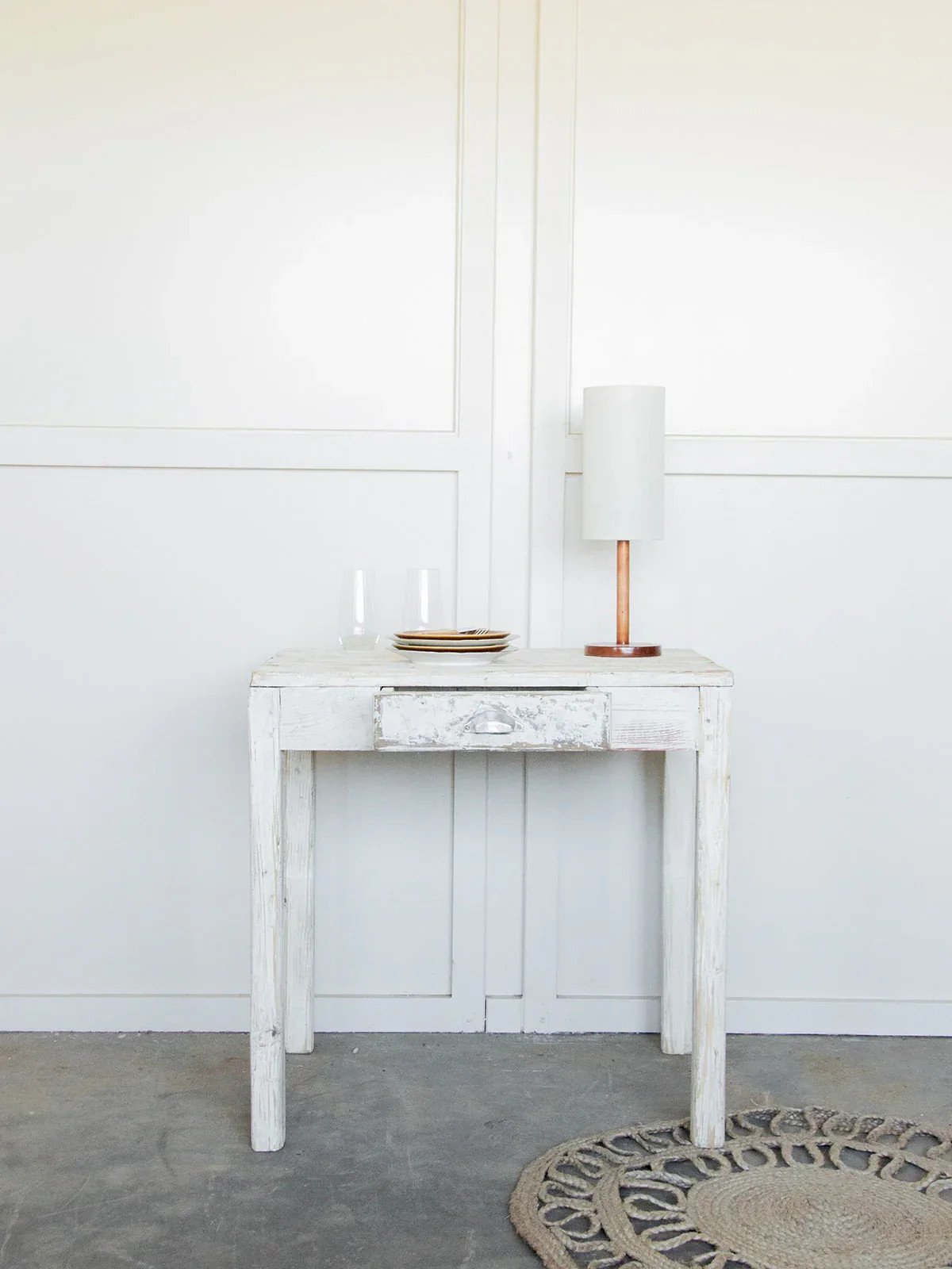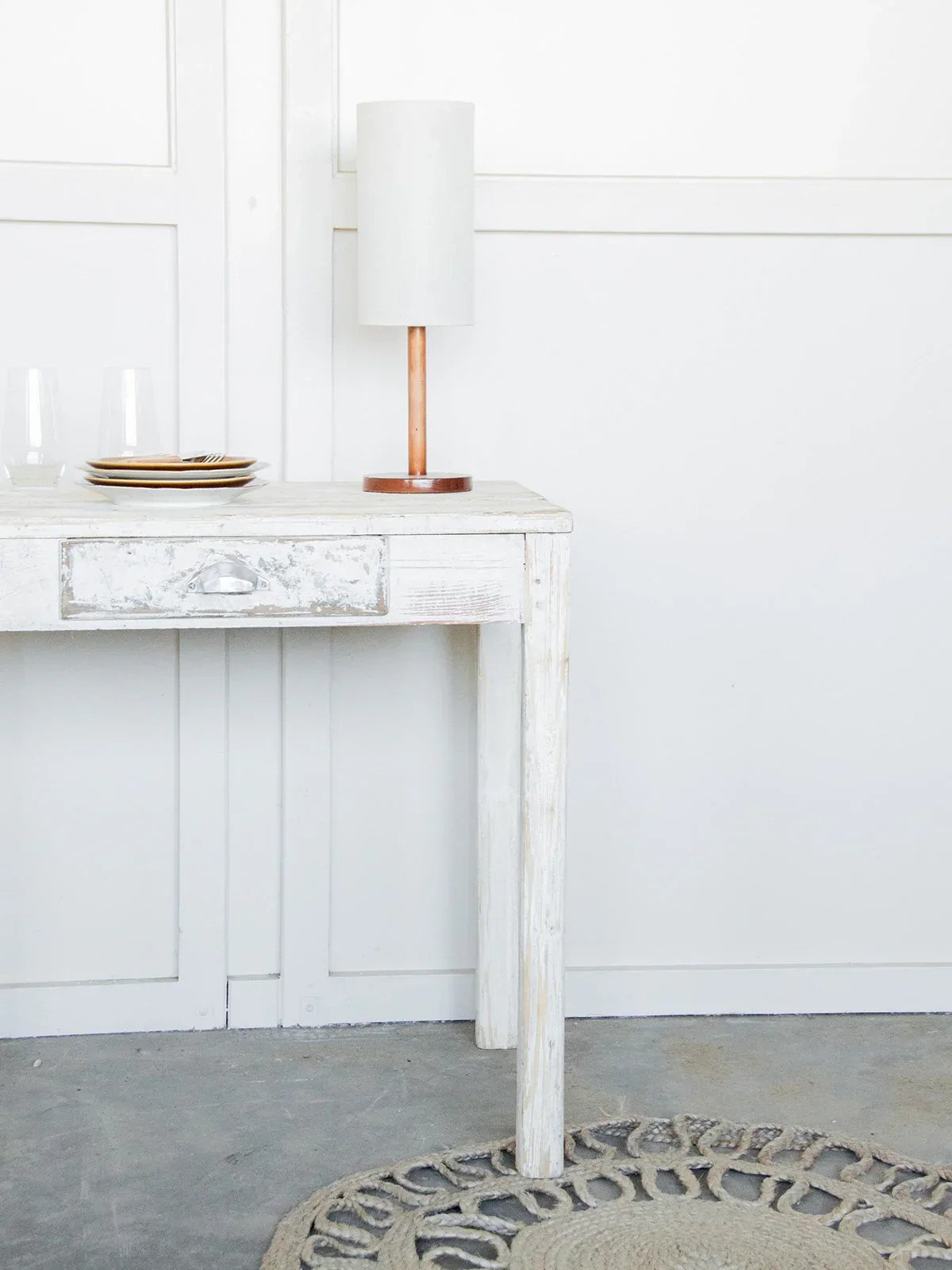 Apportez du charme et de la fonctionnalité à votre espace avec cette table à manger à la patine blanche élégante. Solide et robuste, elle peut parfaitement servir de plan de travail ou de table de travail dans une cuisine ou un atelier. Sa hauteur légèrement supérieure à la normale peut être ajustée en coupant les pieds pour en faire une table standard si besoin. Le tout est agrémenté d'une élégante poignée coquille, ajoutant une touche de détail. Un meuble pratique, adaptable et plein de caractère ! Pouvant accueillir jusqu'à 4 convives. Longueur : 80,5 cm Hauteur : 85 cm Hauteur sous plateau : 66 cm Profondeur : 60,5 cm Petite histoire de la table de ferme La table de ferme est un design intemporel qui orne depuis longtemps les salles à manger. Cette table à manger en bois, inspirée de l’automne, est un indémodable pour une décoration vintage et bohème. Classique avec des teintes de bois vives et lumineuses et un aspect brut, elle est surtout choisie pour sa grande taille, son aspect uni et ses tiroirs placés sous le plateau. La grande table de ferme est un élément incontournable de toutes les réunions de famille ! État:Occasion: Objet ayant été utilisé. Objet présentant quelques marques d'usure superficielle, ...Occasion: Objet ayant été utilisé. Objet présentant quelques marques d'usure superficielle, entièrement opérationnel et fonctionnant correctement. Il peut s'agir d'un modèle de démonstration ou d'un objet retourné en magasin après une courte période d'utilisation. les éventuelles imperfections. Marque:Debongout Type:Produit chiné Matériau:Bois Style:Campagne Personnalisé:Tables à manger