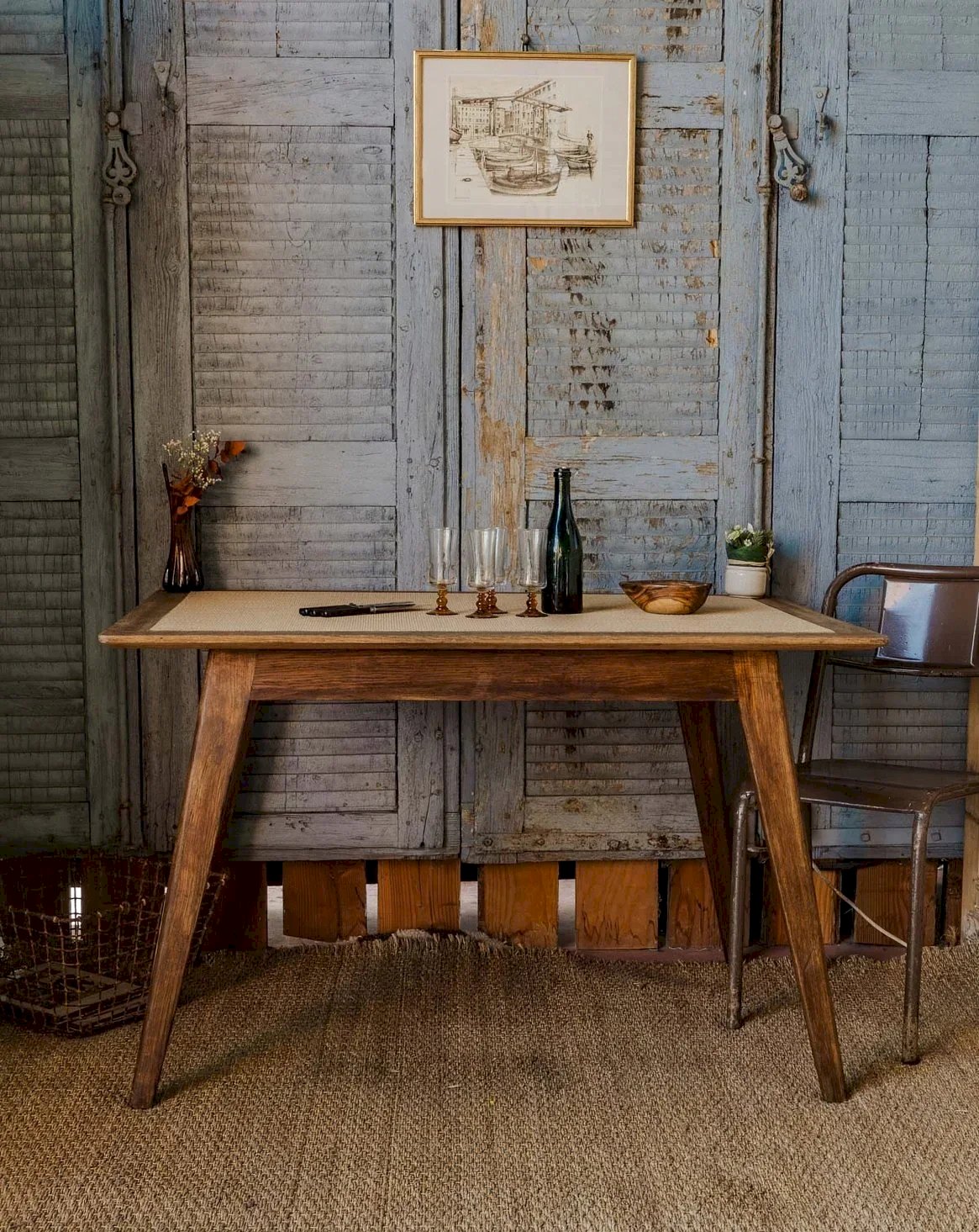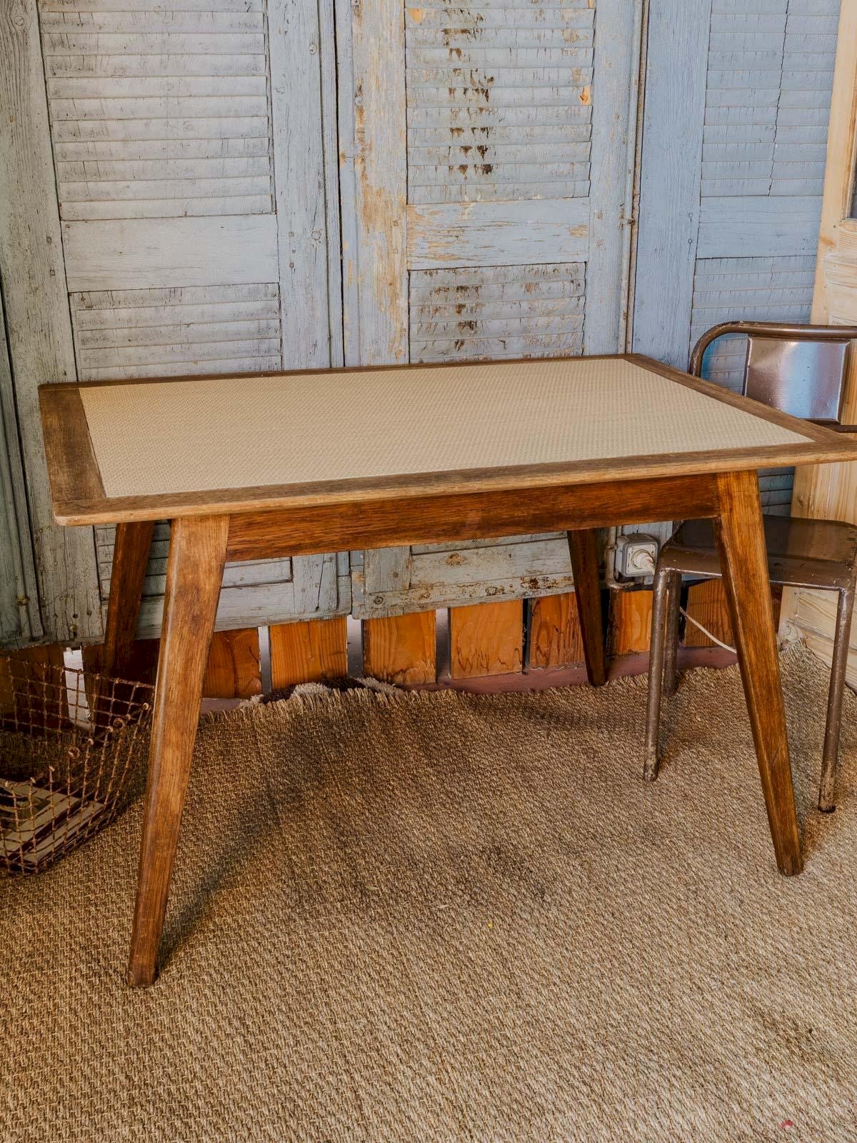 Découvrez cette table à manger à la structure en bois foncé et plateau en osier tressé, qui conjugue robustesse et chaleur naturelle. Sa longueur permet d'accueillir confortablement 4 à 6 convives et ses proportions généreuses en font une pièce centrale pour des repas conviviaux, qu'elle soit installée dans une cuisine contemporaine ou un intérieur plus champêtre. Le contraste des matériaux apporte une touche artisanale et élégante à l'ambiance. Quelques traces du temps présentes. Longueur : 121 cm Largeur : 85 cm Hauteur : 74 cm Hauteur d'assise : 63 cm Petite histoire de la table de ferme La table de ferme est un design intemporel qui orne depuis longtemps les salles à manger. Cette table à manger en bois, inspirée de l’automne, est un indémodable pour une décoration vintage et bohème. Classique avec des teintes de bois vives et lumineuses et un aspect brut, elle est surtout choisie pour sa grande taille, son aspect uni et ses tiroirs placés sous le plateau. La grande table de ferme est un élément incontournable de toutes les réunions de famille ! État:Occasion: Objet ayant été utilisé. Objet présentant quelques marques d'usure superficielle, ...Occasion: Objet ayant été utilisé. Objet présentant quelques marques d'usure superficielle, entièrement opérationnel et fonctionnant correctement. Il peut s'agir d'un modèle de démonstration ou d'un objet retourné en magasin après une courte période d'utilisation. les éventuelles imperfections. Marque:Debongout Type:Produit chiné Matériau:Bois, Osier Style:Campagne Personnalisé:Tables à manger